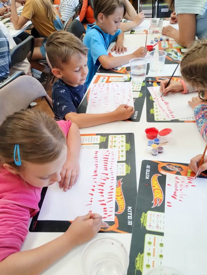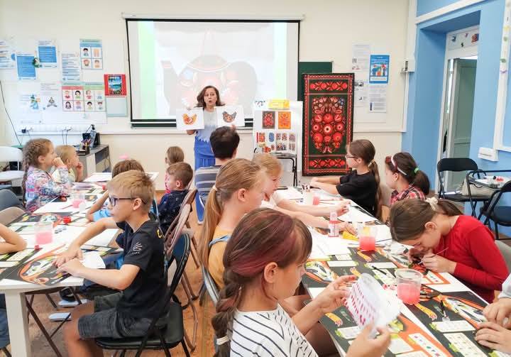 🌿 Пані Олена навчила дітей малювати «рваний мазок» і «видовжене зернятко», пояснила особливості місцевої кольорової гами.