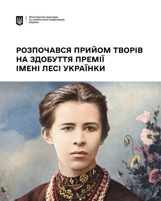 Повідомляємо важливу новину для всіх діячів культури та мистецтва України! Розпочався прийом творів на здобуття престижної Премії імені Лесі Українки за літературно-мистецькі твори для дітей та юнацтва. Ця щорічна відзнака, що присуджується Кабінетом Міністрів України, є визнанням видатних досягнень у створенні високохудожніх творів, які сприяють вихованню молодого покоління, розвитку дитячої та юнацької літератури, а також мистецтва.