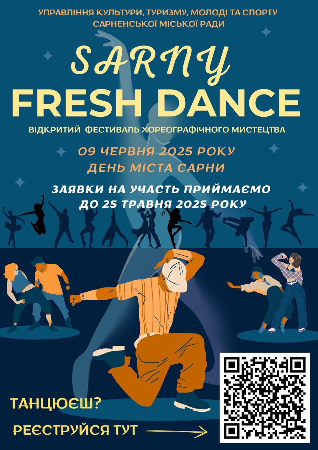 Запрошуємо всіх, хто любить танець, від аматорів до професіоналів, стати частиною цієї неймовірної культурно-мистецької події! «SARNY FRESH DANCE» – це простір свободи руху, щирих емоцій і творчості, а не змагання.