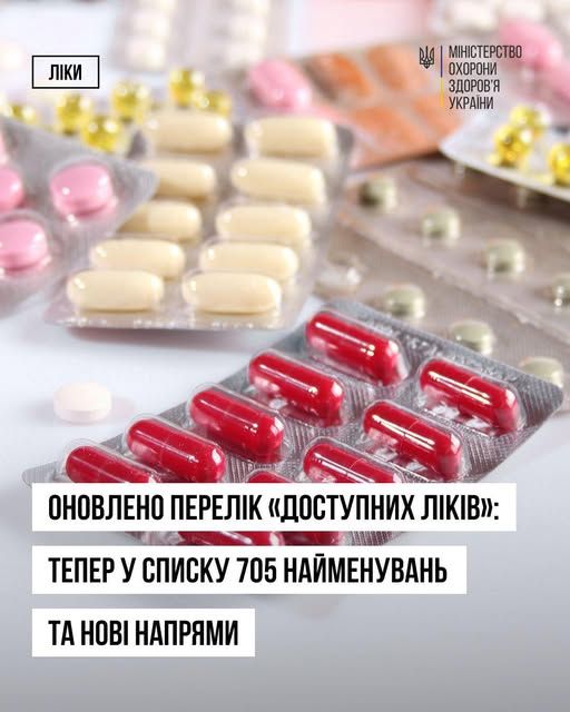 ℹ️ Програма «Доступні ліки» – це вже понад 700 найменувань. Загалом, завдяки оновленням, програма «Доступні ліки» налічує вже понад 700 найменувань. Це включає 595 лікарських засобів, 38 препаратів інсуліну, 30 комбінованих препаратів та 42 види тест-смужок для вимірювання рівня глюкози. Таке розширення асортименту забезпечує ширший вибір для пацієнтів з різними потребами.
