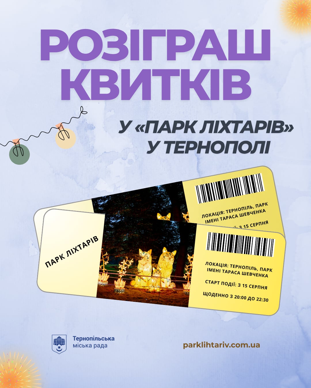 🎁 РОЗІГРАШ 2 КВИТКІВ У ПАРК ЛІХТАРІВ У ТЕРНОПОЛІ✨