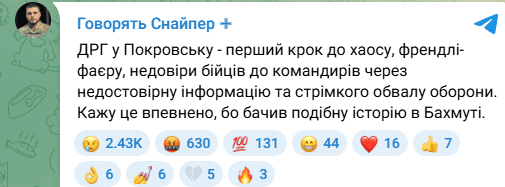 «ДРГ у Покровську – перший крок до хаосу, френдлі-фаєра, недовіри бійців до командирів через недостовірну інформацію та стрімкого обвалу оборони. Кажу це впевнено, бо бачив подібну історію в Бахмуті», – наголосив «Осман».