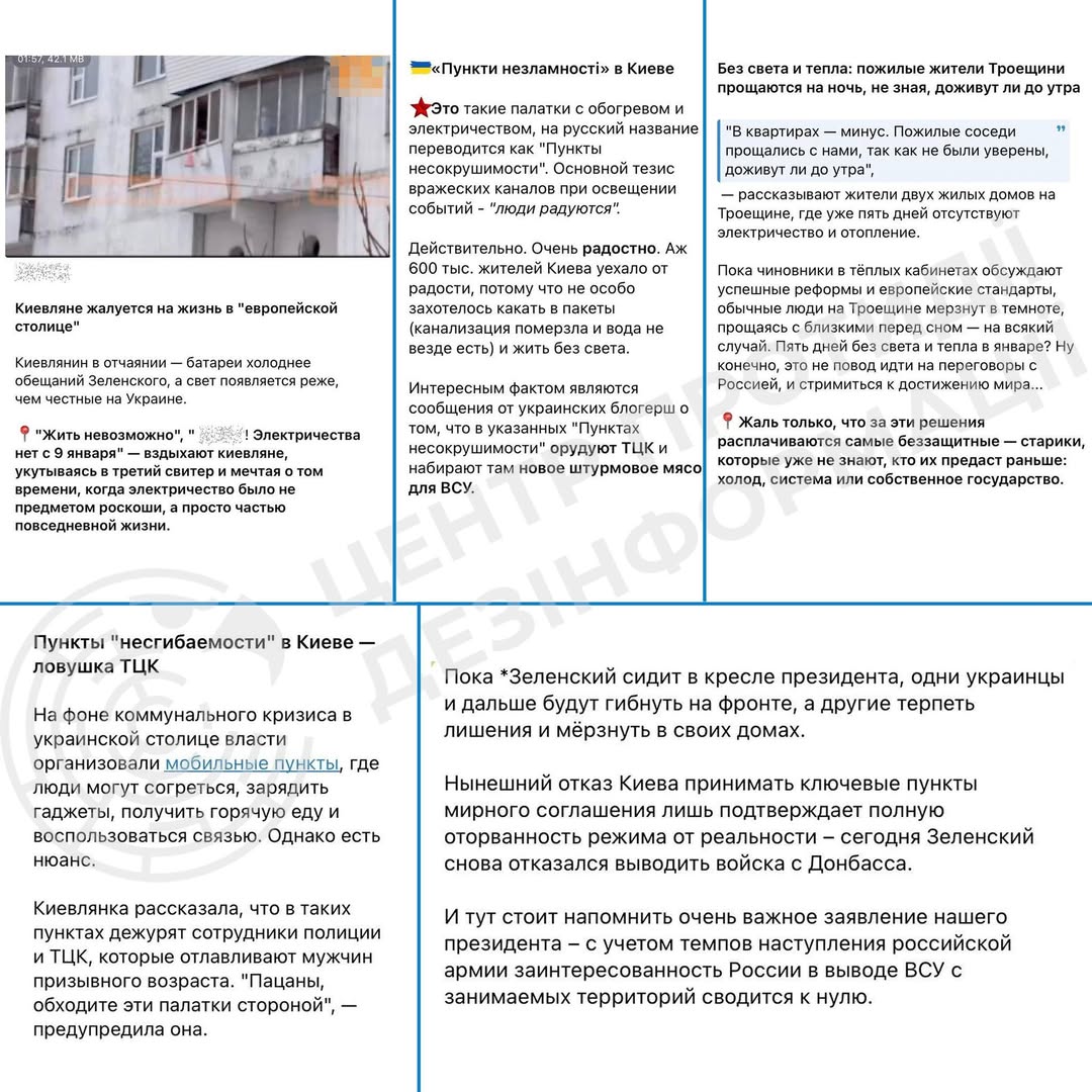 ▫️Центральний наратив кампанії — перекладання відповідальності на українську владу за наслідки російських ударів. Паралельно нав’язується думка, що нібито поступки з боку України на переговорах можуть вирішити проблему з електропостачанням. Таким чином ворог намагається трансформувати гуманітарний шантаж у політичний тиск на владу України.