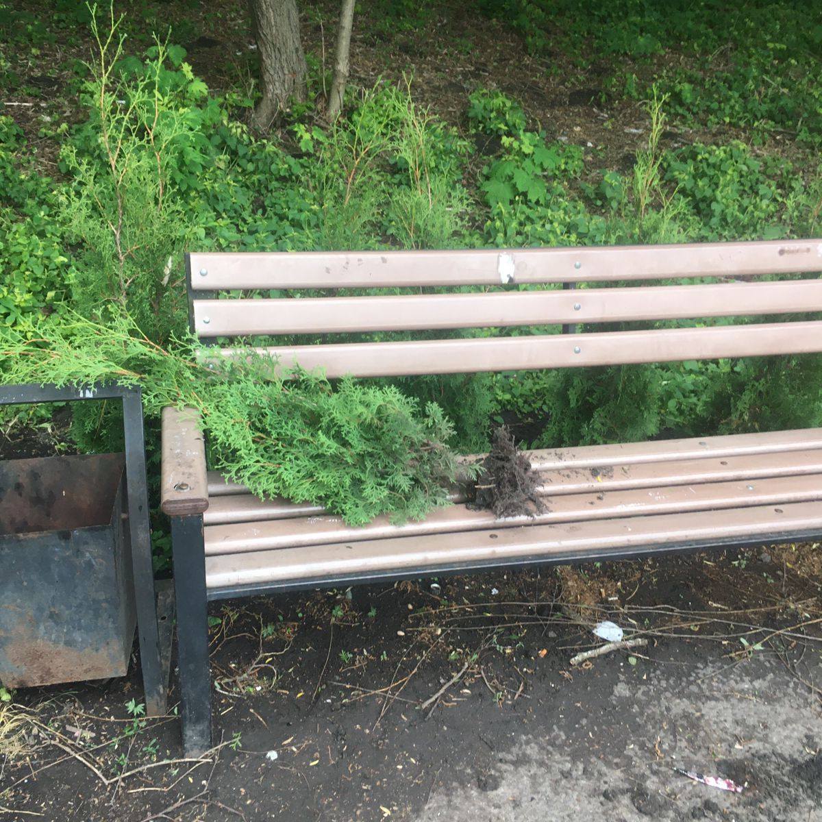 На жаль, неприємний інцидент повторився на набережній міського ставу: знову знищено молоді туї, які нещодавно висадили для покращення вигляду цієї зони відпочинку. Цього разу вандали не просто пошкодили дерева, а й залишили викорінену рослину засихати на лавці. Це красномовне свідчення не лише безглуздої жорстокості, а й повної байдужості до спільного надбання.