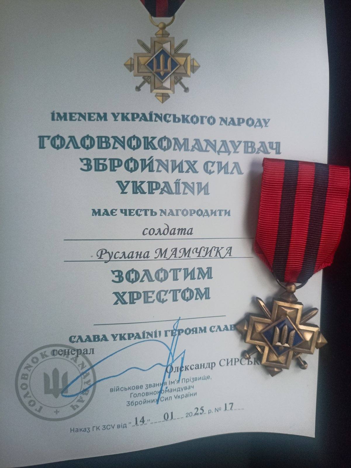Руслан Мамчик: Герою вручено «Золотий Хрест»