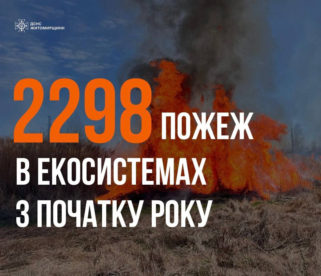 Попри постійну профілактичну роботу та застереження, пожежі сухої рослинності на Житомирщині не припиняються. Від початку року вже зафіксовано 2298 випадків, вогонь знищив понад 2645 гектарів території.