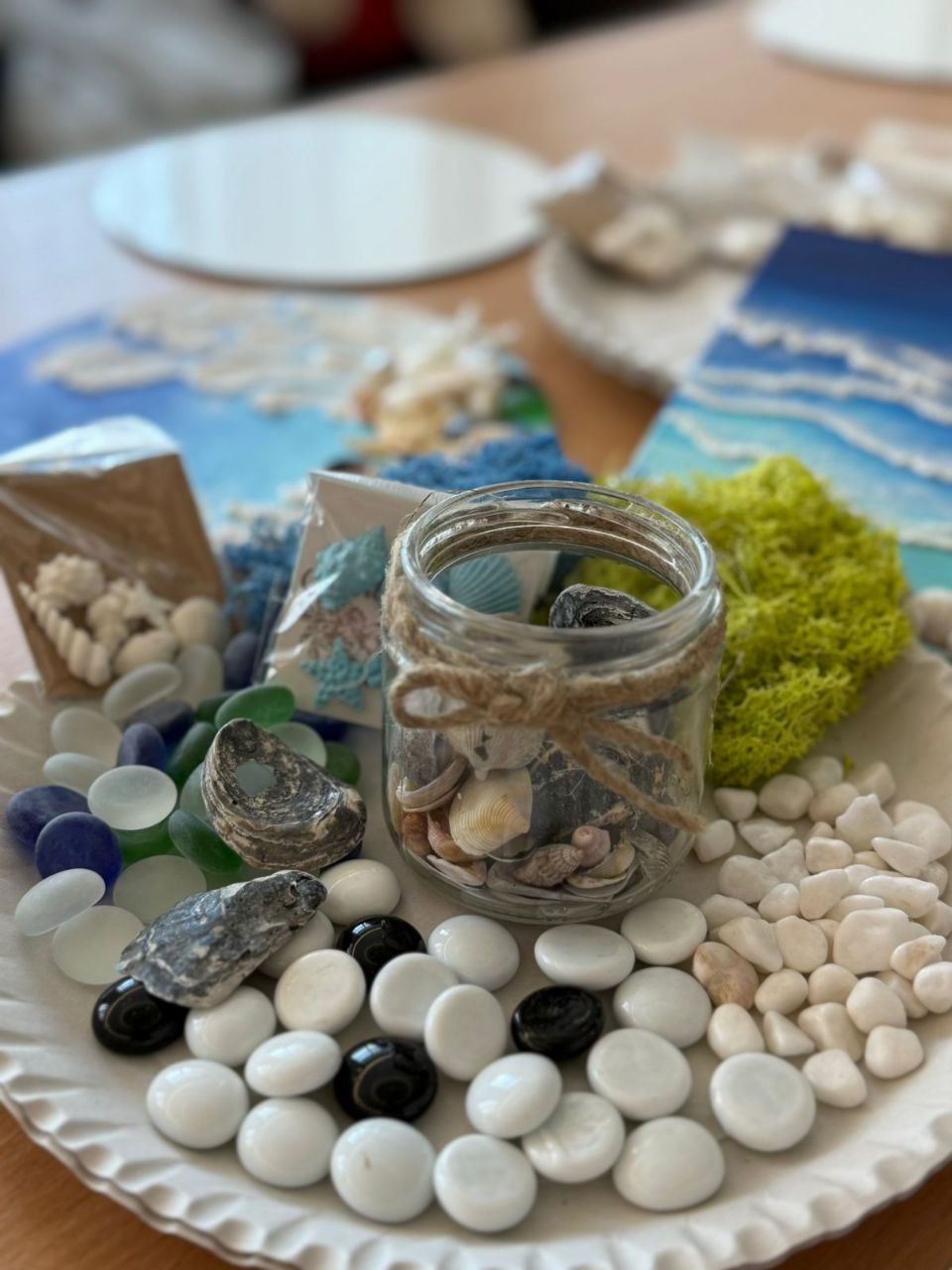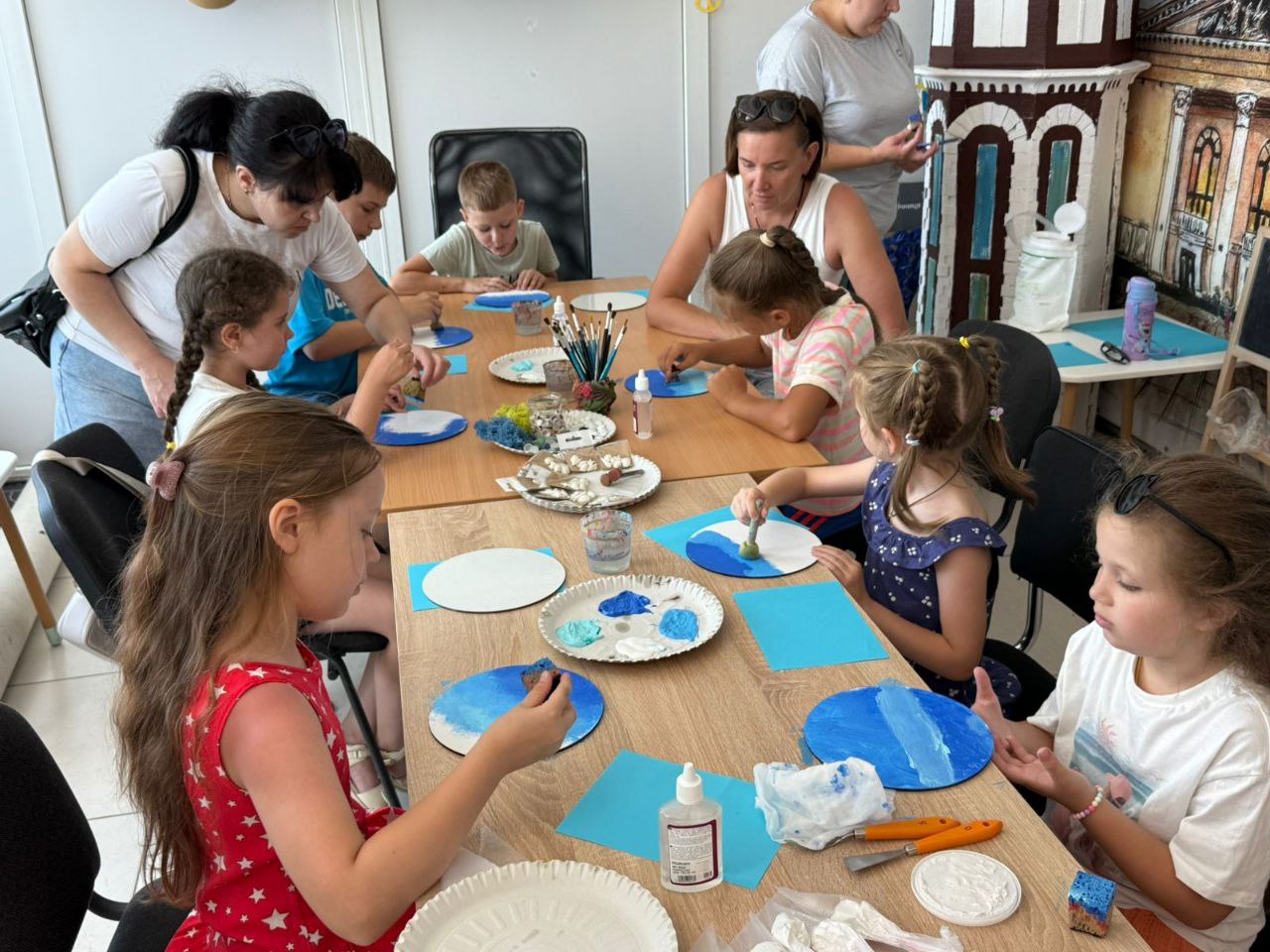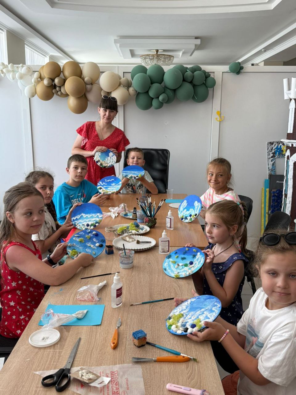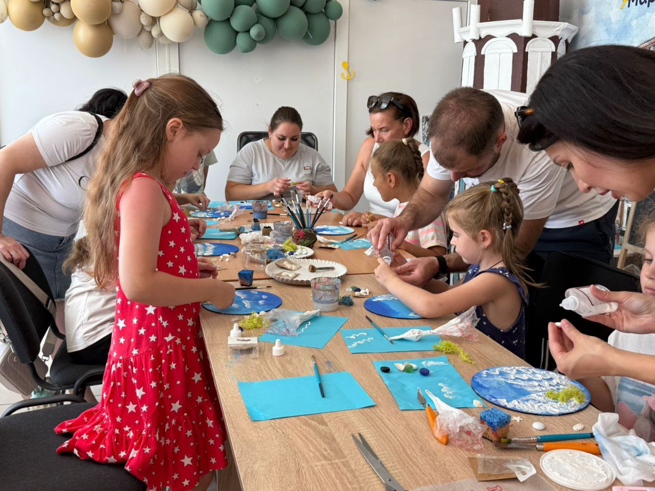 Під час майстер-класу дітлахи створювали об’ємні морські хвилі за допомогою текстурної пасти, а потім прикрашали свої роботи морськими мушлями та камінчиками. Кожен зміг втілити власне бачення моря: від лагідних хвиль до бурхливого прибою. Створені інсталяції нагадують рідне море у місті Марії.