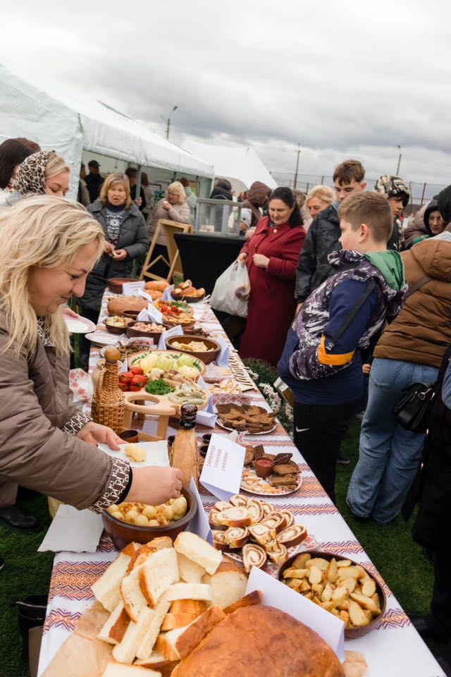 🔸 Село Баківці дивували печеною капустою з часником та гірчицею, домашнім узваром, квашениною та солоним салом – справжній смак традиційного українського столу.