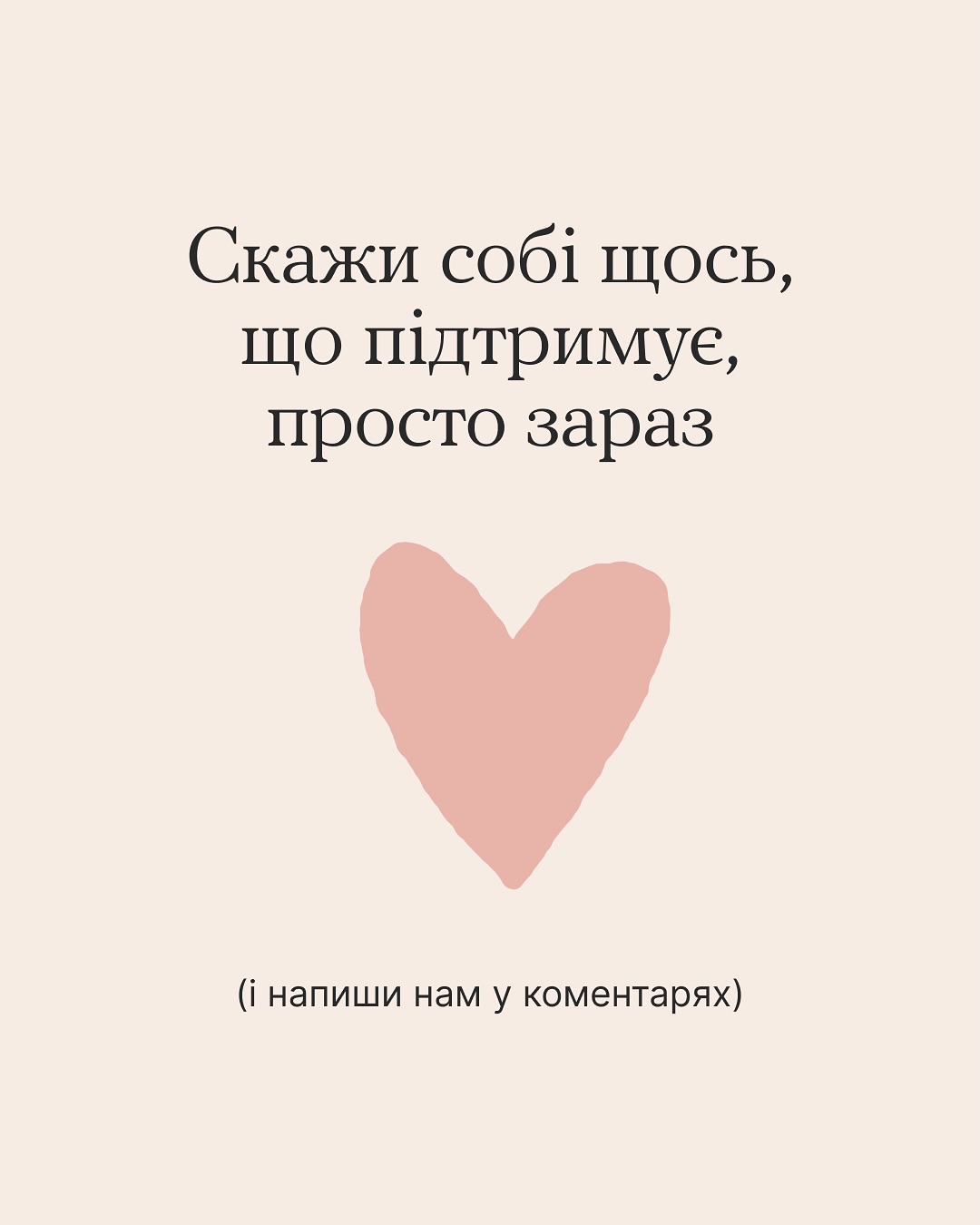 Гортайте карусель, щоб нагадати собі про цілющу силу добрих слів, а можливо, й навчитися формувати їх для себе. Здатність перетворювати свій внутрішній діалог з осудливого на турботливий може стати ключем до щоденного відчуття легкості, впевненості та спокою.