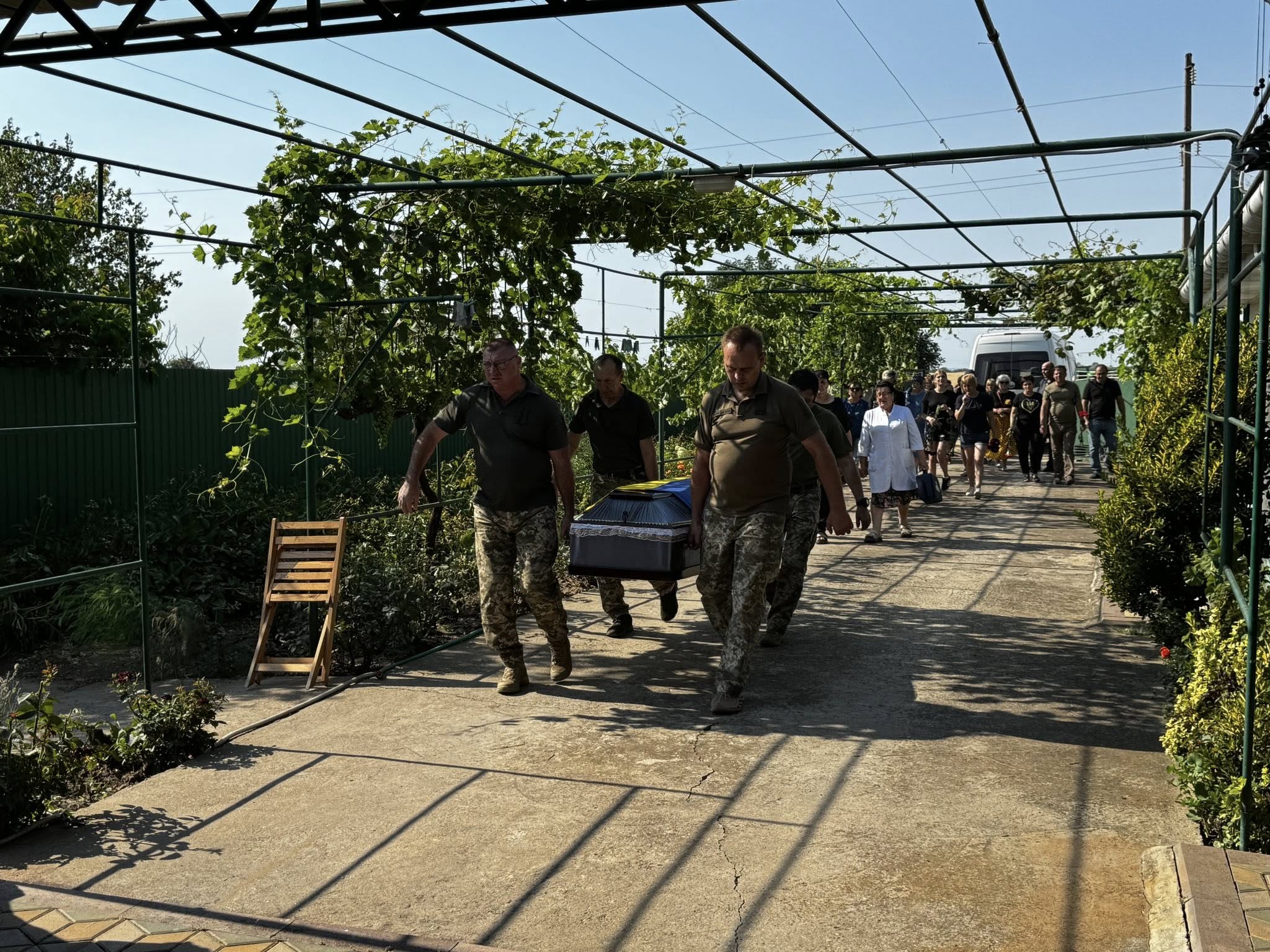 Героя зустріли в рідному селі живим коридором шани — люди стали навколішки, схиливши голови в глибокій скорботі та пошані. Петра Петровича провели до рідної домівки, де відбулося прощання і чин відспівування.