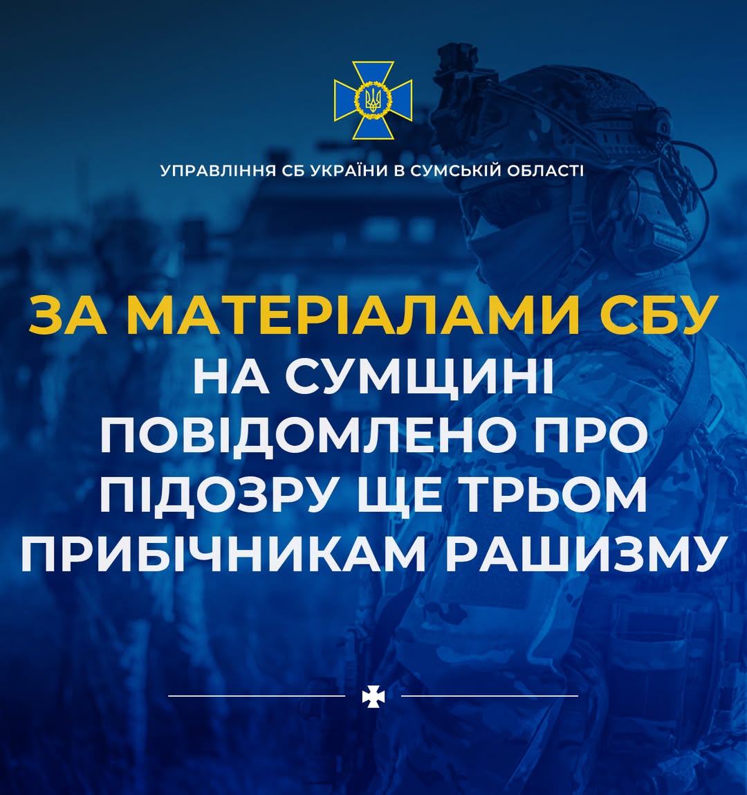 Служба безпеки продовжує системну роботу з викриття та притягнення до кримінальної відповідальності прихильників окупантів. З лютого 2022 року слідчі СБУ повідомили про підозру у виправдовуванні збройної агресії рф та глорифікації загарбників (ст. 436-2 Кримінального кодексу України) понад ста поціновувачам «руського міра» на Сумщині.