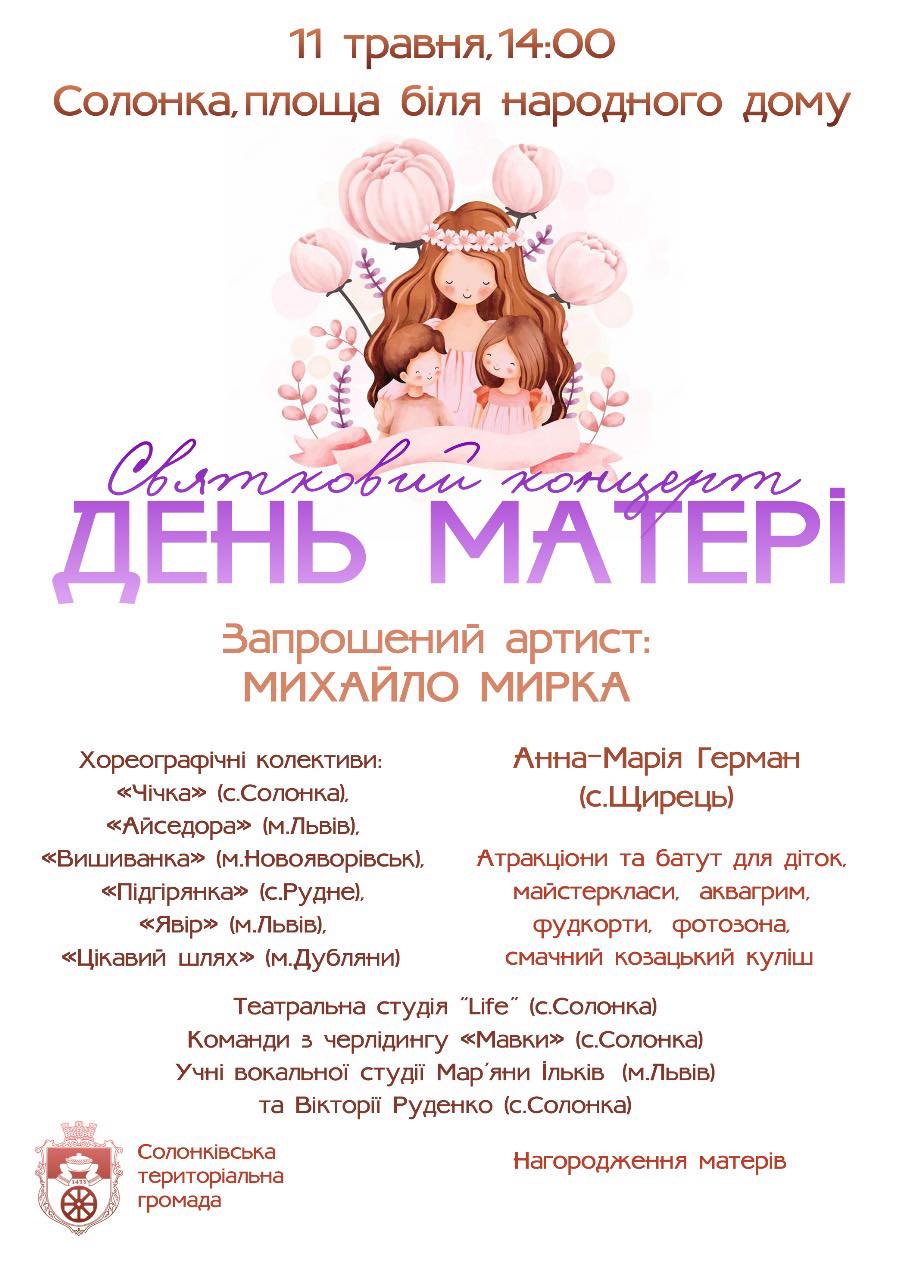 День матері в Солонці: Святковий концерт та розваги!