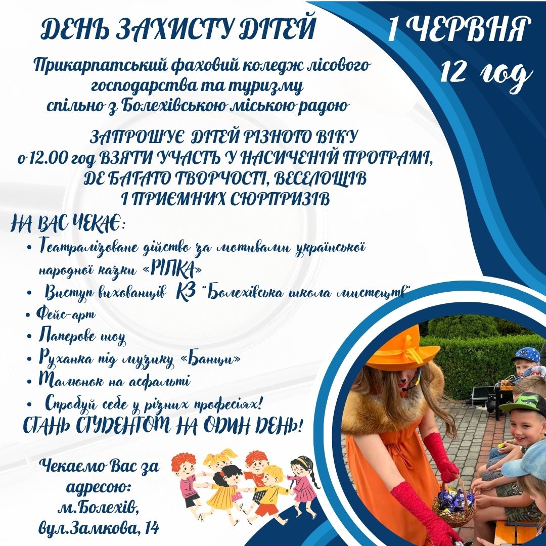 Приєднуйтесь до нас 1 червня у Прикарпатському фаховому коледжі лісового господарства та туризму на святкуванні Дня захисту дітей! На вас чекає незабутнє свято дитинства, сповнене радості та натхнення! День захисту дітей – це чудова нагода подарувати малечі щасливі моменти.