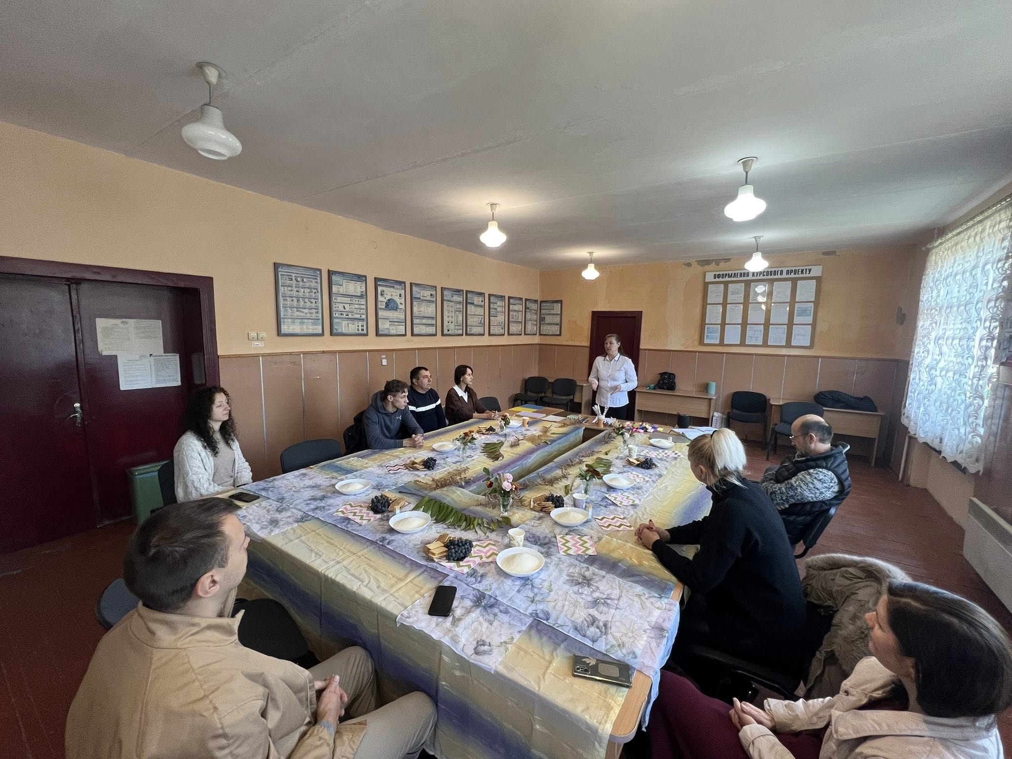 Зустріч розпочалася з інтерактивних завдань. Кожен учасник отримав можливість подарувати комплімент колезі, починаючи з першої літери його імені. Це створило теплу та дружню атмосферу. Особливо захопливим виявилося завдання з пісочної терапії, де замість піску використовувалася манна крупа. Під спокійну медитативну музику, виконуючи різні рівні завдань, учасники відчували сипучу суміш у своїх руках. Це був чудовий спосіб вилити тривожність, зупинитися, зазирнути вглиб себе та знайти причину для посмішки.