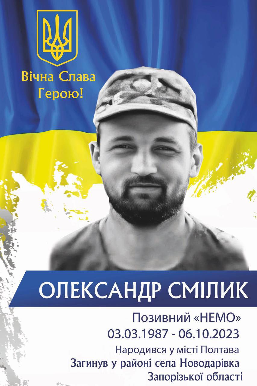 Олександру було лише 36 років… Він не встиг створити власної родини, але залишив по собі величезний скарб – незгасну любов, глибоку шану та вічну пам’ять. Ці почуття живуть у серцях його мами, сестри, численних друзів, бойових побратимів та всіх, хто мав щастя знати цього видатного українця. Пам’ять про Олександра Смілика, «НЕМО», назавжди залишиться в наших серцях.