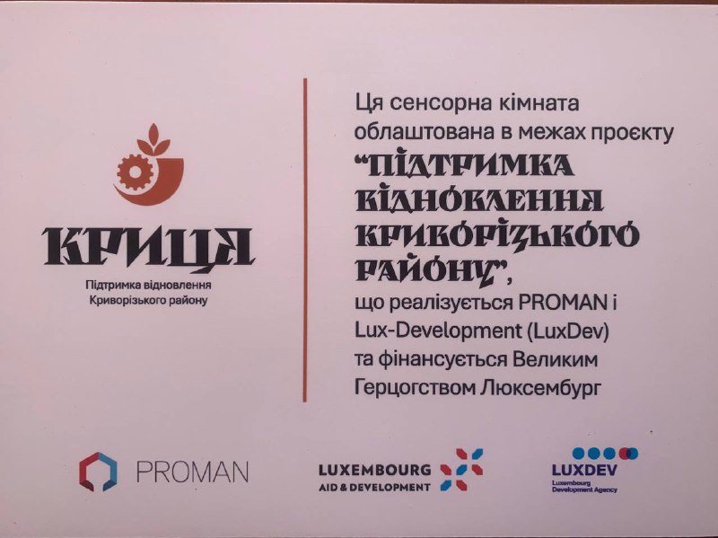 Цей проєкт реалізовано в межах ініціативи «КРИЦЯ: Підтримка відновлення Криворізького району» , що реалізується за фінансування Великого Герцогства Люксембург спільно з компанією PROMAN та агенцією розвитку LuxDev.