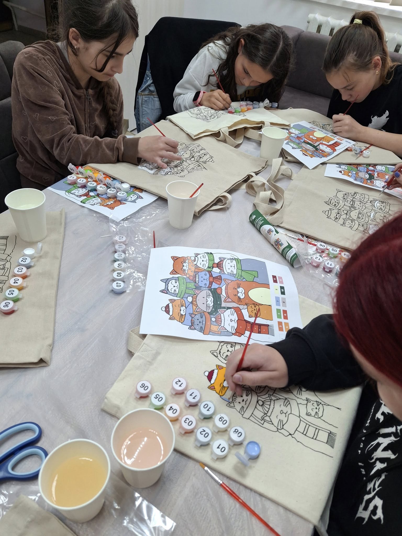 🎨 Майстер-клас із розпису еко-шоперів став справжньою арт-терапією для дітей. Фарби, якими вони розмальовували тканину, допомогли заспокоїти думки, наповнити серця теплом і радістю. У процесі творчості діти змогли відчути важливість збереження гармонії з навколишнім світом і з собою. Кожен еко-шопер став унікальним витвором мистецтва, пам’ятним подарунком, створеним власноруч. Цей захід, як творчість і дружба, залишить приємні спогади у серцях дітей.