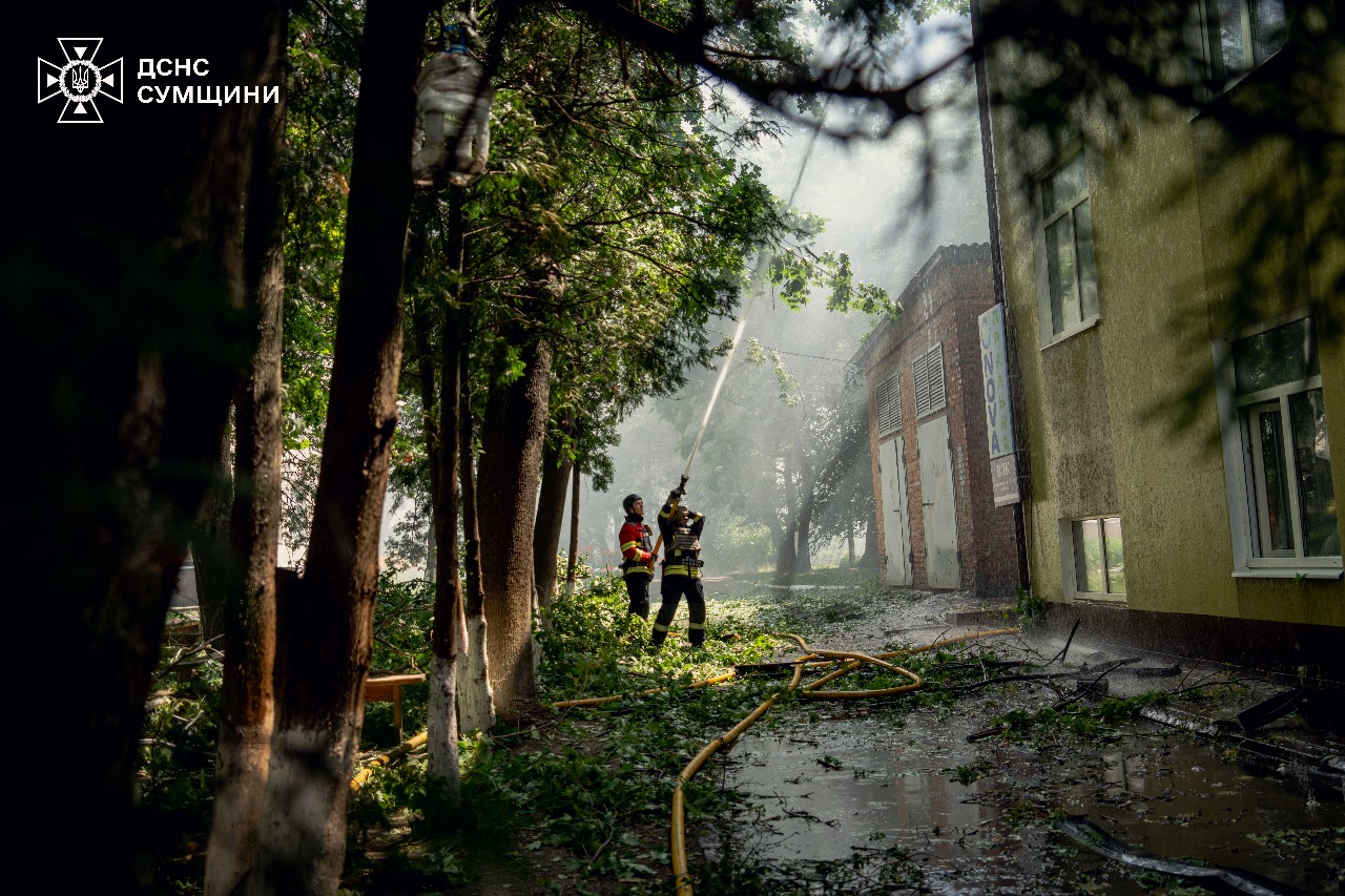 Серія ворожих ударів по навчальному та медичному закладах у Сумах: травмовано громадян, рятувальники потрапили під повторну атаку