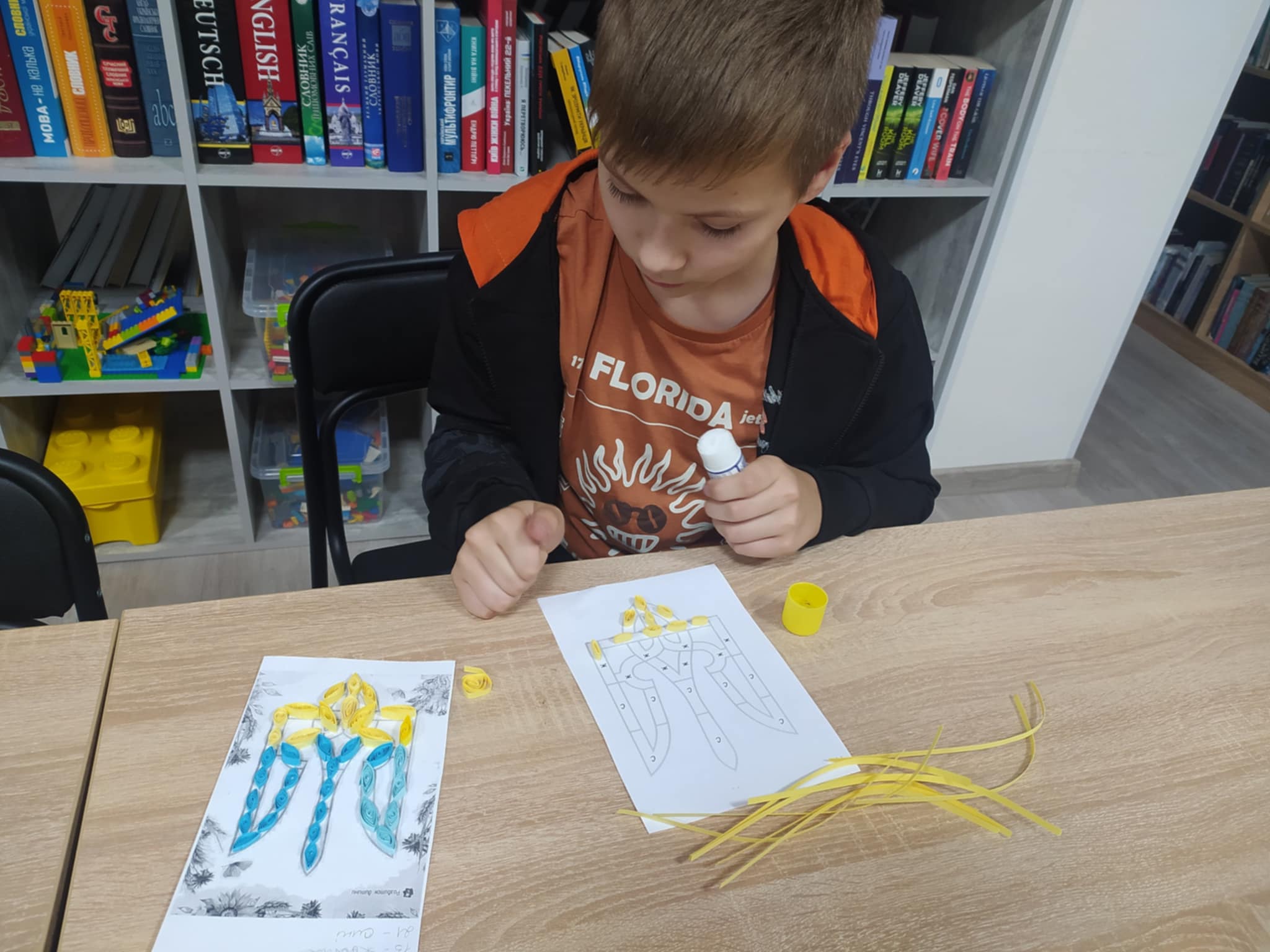 У творчому процесі, використовуючи техніку квілінгу, кожна дитина мала змогу втілити своє бачення українських символів. За допомогою кольорових смужок паперу вони створювали тендітні, але глибоко змістовні композиції. На паперових основах оживали зображення гербів та колосків, які діти виготовляли з особливою гордістю та безмежною любов’ю до своєї Батьківщини. Кожен елемент, створений дитячими руками, ніс у собі глибокий сенс та оберіг для України.