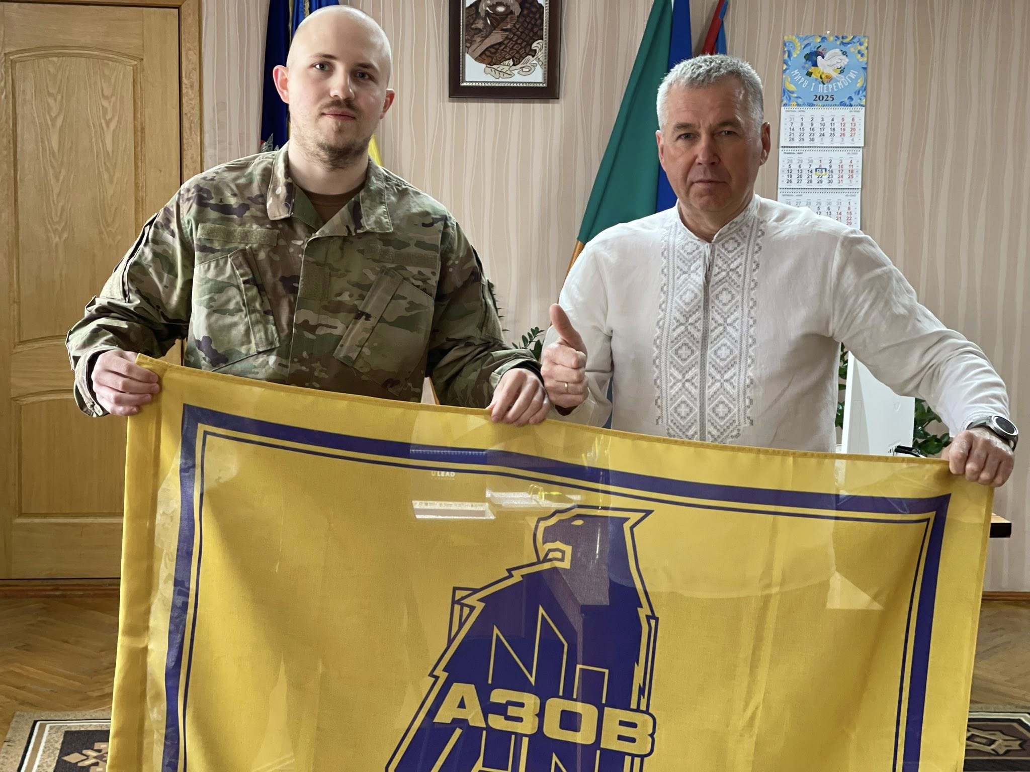 Символ вдячності та єдності: Прапор бригади “Азов” передано Тальнівській громаді. Сьогодні міський голова Василь Сідько приймав особливого гостя – земляка, військовослужбовця окремої штурмової бригади “Азов”, Владислава Крикунова. Владислав, який героїчно захищає Україну в лавах легендарного підрозділу ЗСУ, прибув з важливою місією та не з порожніми руками.
