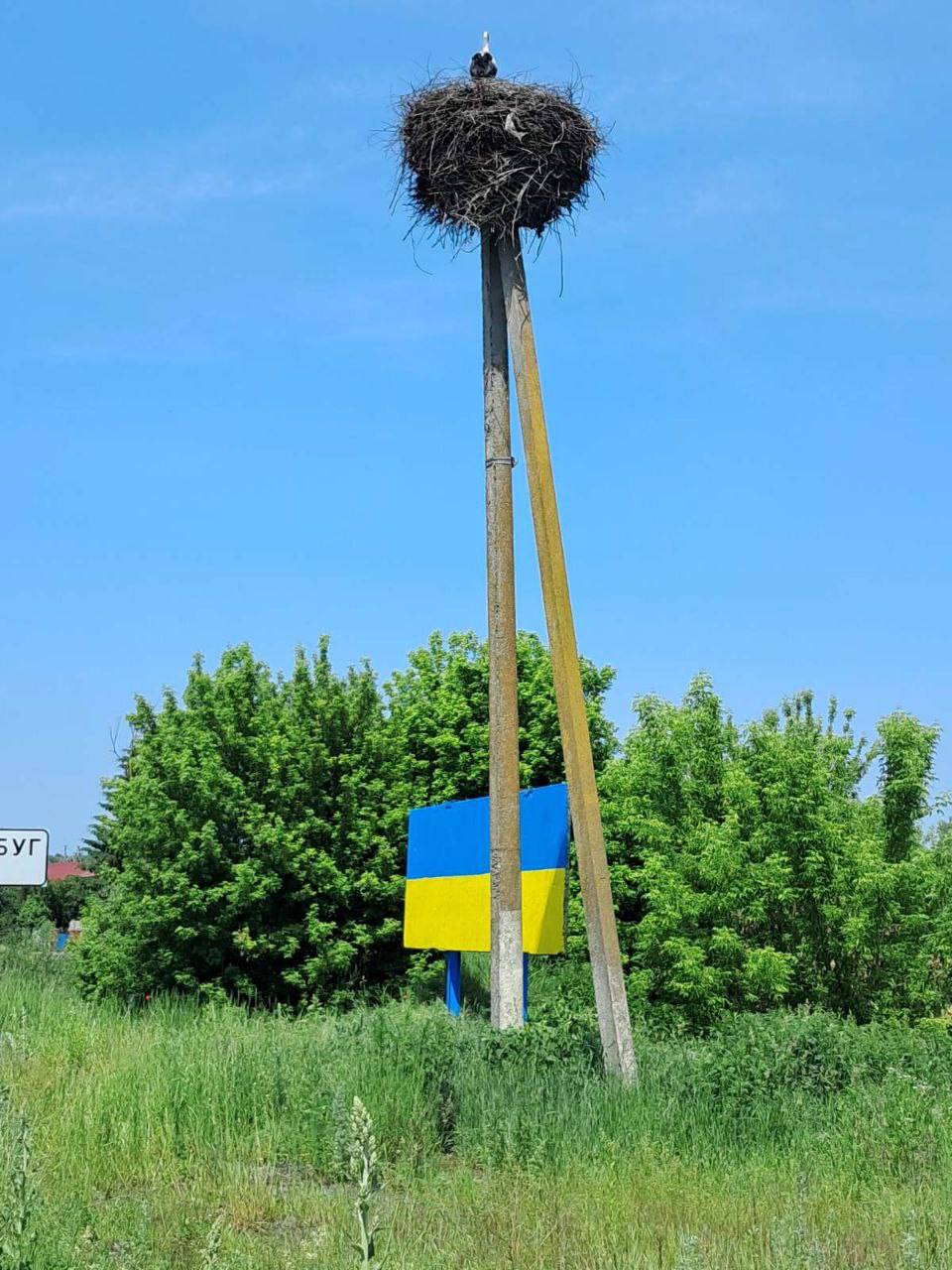 Поруч зі стелою знаходиться гніздо лелеки – символ вірності, добра і затишку, що додає особливої зворушливості моменту. Здається, ніби ці птахи оберігають наш прапор, який є найціннішим символом для кожного українця. Підтримка та збереження національних символів, таких як синьо-жовтий стяг, є надзвичайно важливим у контексті зміцнення патріотизму та національної єдності.