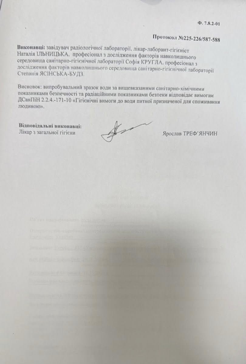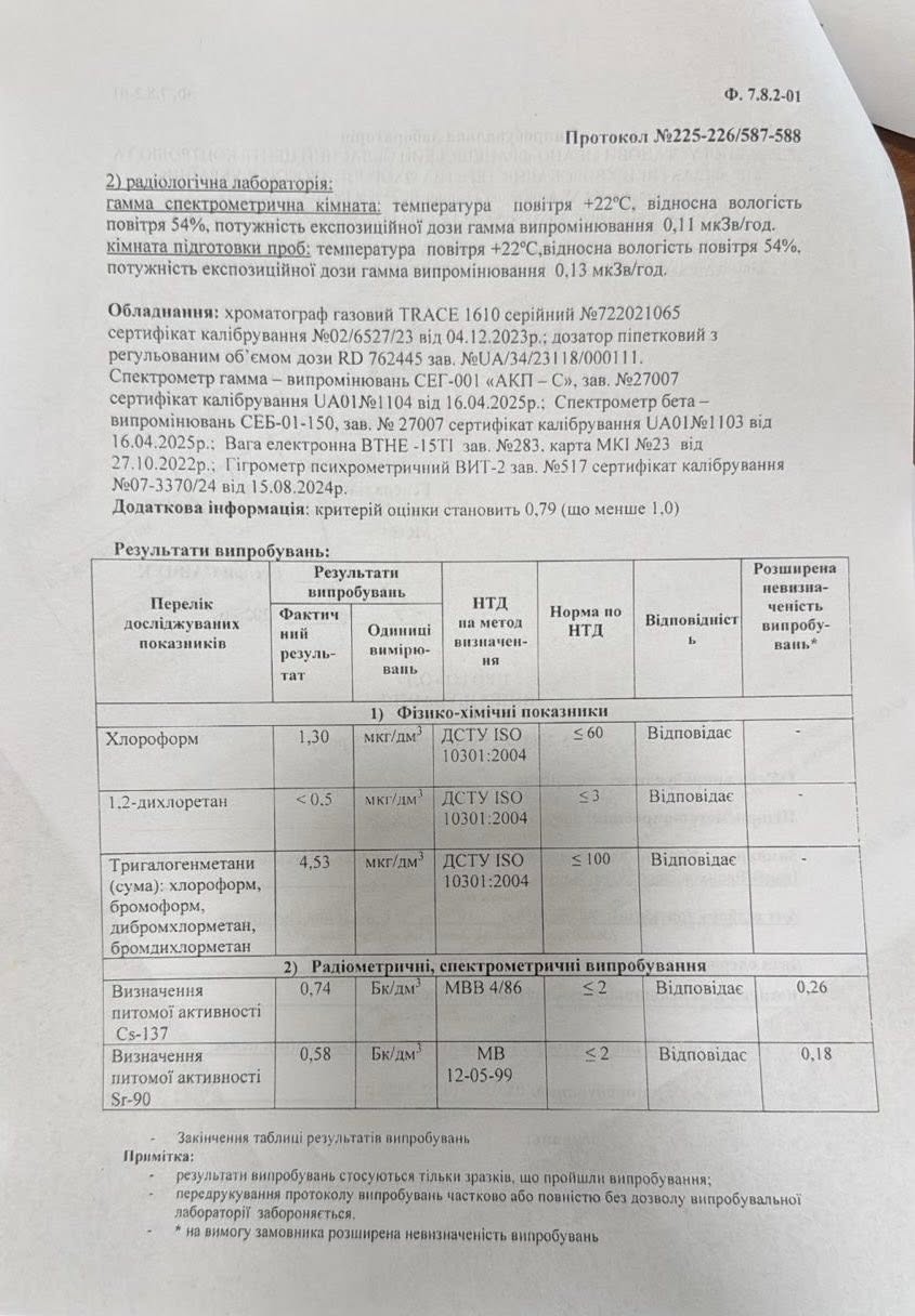 повністю відповідає всім державним санітарним нормам. Жодних перевищень рівнів тригалогенметанів, хлороформу чи інших контрольованих сполук виявлено не було. ✅ Цей результат став важливим підтвердженням безпеки