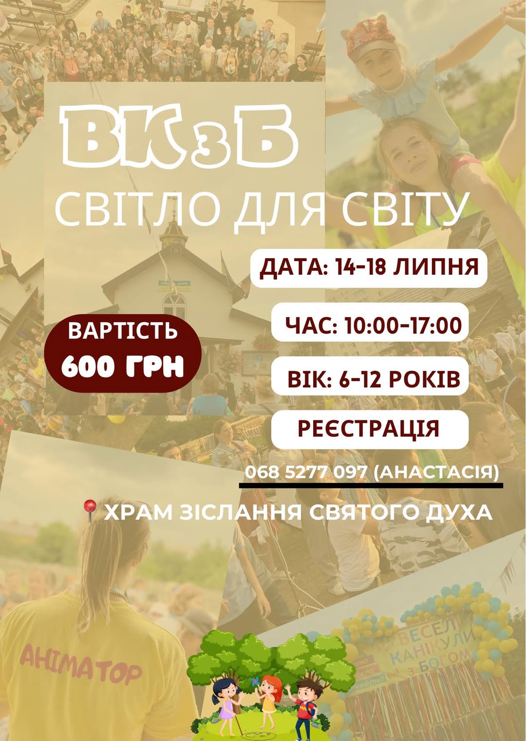 Слава Ісусу Христу! Це літо обіцяє бути особливим, адже вже почався наш захоплюючий Літній табір з Богом! Ми запрошуємо всіх бажаючих долучитися до незабутньої подорожі, наповненої духовною глибиною, радісними розвагами та щирим спілкуванням. Цей християнський табір створений для того, щоб кожен учасник зміг відчути особливу атмосферу єднання, наповнитися натхненням та отримати незабутні враження, які залишаться у серці надовго. Ми з нетерпінням чекаємо на вас на затишній території храму Зіслання Святого Духа, що розташований за адресою газопровід. Це місце стане справжнім осередком для духовного та особистісного зростання, де кожен зможе знайти щось для себе. Протягом табору ми будемо присвячувати час спільній молитві, яка допоможе поглибити віру та відчути присутність Господа у нашому житті. Ранкові та вечірні молитви, роздуми над Словом Божим, а також можливість особистого спілкування зі священиками – все це створюватиме особливу духовну атмосферу. Наш Літній табір з Богом – це не просто відпочинок, це можливість для справжнього оновлення. Окрім духовних практик, ми приготували насичену програму розваг та активностей. На вас чекають різноманітні ігри на свіжому повітрі, захопливі квести, творчі майстер-класи, де ви зможете розкрити свої таланти, а також вечірні посиденьки біля вогнища з піснями та душевними розмовами. Ми прагнемо, щоб цей літній табір став місцем, де можна не лише відпочити, а й знайти нових друзів, обмінятися досвідом та просто чудово провести час у колі однодумців. Відпочинок влітку разом з нами буде наповнений позитивними емоціями та яскравими спогадами. Цей церковний табір пропонує унікальну нагоду відволіктися від повсякденної метушні, поринути у світ гармонії та спокою. Він ідеально підходить для тих, хто шукає духовний розвиток та прагне провести літо з користю для душі та тіла. Ми запрошуємо як дітей, так і молодь, адже програма розроблена таким чином, щоб кожен знайшов собі заняття до душі. Це чудовий дитячий табір та молодіжний табір одночасно, де враховуються потреби та інтереси різних вікових груп. Приходьте реєструватися на наш Літній табір з Богом вже 14 липня о 9:30. Реєстрація відбуватиметься безпосередньо на території храму. Пожертва за участь у таборі становить лише 600 гривень, що дозволяє покрити організаційні витрати та забезпечити комфортне перебування для всіх учасників. Ми віримо, що ці вкладення у ваш духовний та особистісний розвиток є надзвичайно цінними. Не упустіть свій шанс додати яскравих, незабутніх спогадів цьому літу разом з нами! Цей релігійний табір стане для вас місцем, де ви знайдете відповіді на важливі питання, зміцните свою віру та просто насолодитесь чудовим часом у благодатній атмосфері. До зустрічі в храмі Зіслання Святого Духа, щоб створити разом неймовірне літо!