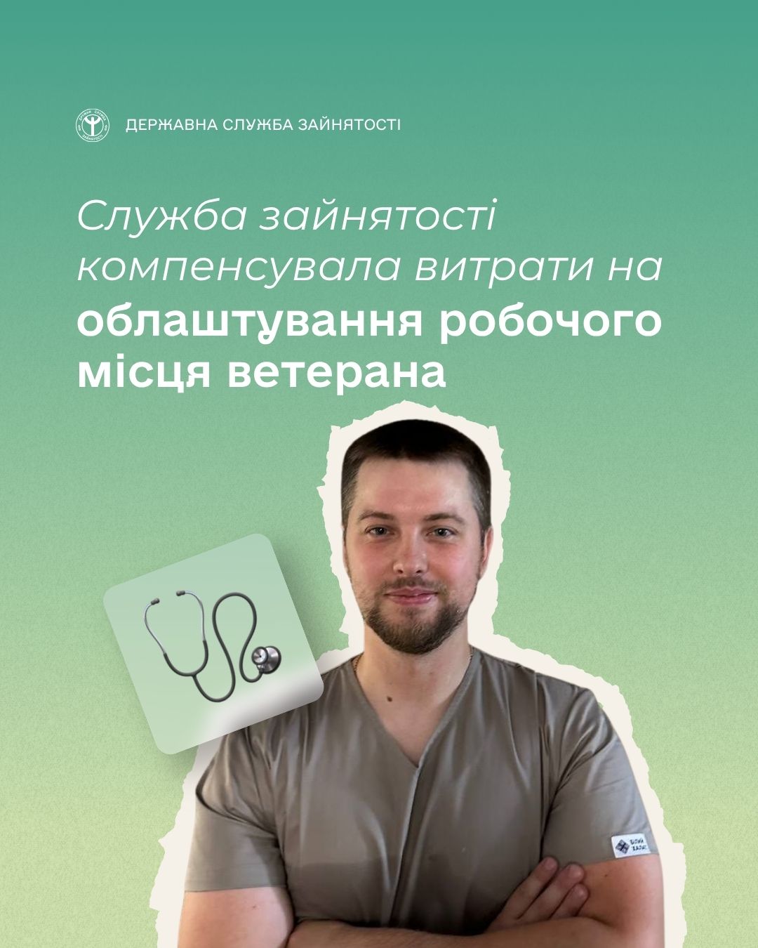 ✅Державна служба зайнятості надала компенсацію для облаштування робочого місця ветерану, нагородженому орденом «За мужність».