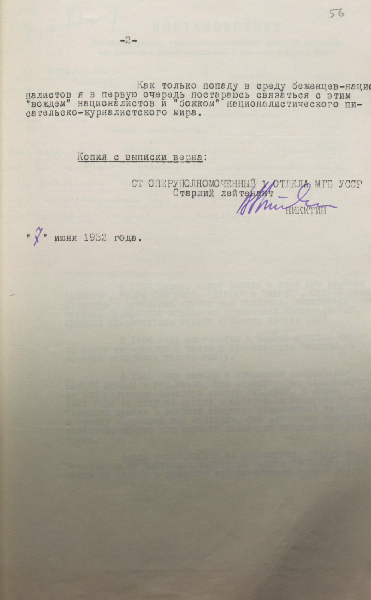 Саме за той період прискіпливо взялися в кдб урср у 1980 році після отримання ШТ із москви. Мали знайти свідчення «активної співпраці з німецькою окупаційною владою», «публікації з вихвалянням прогітлерівського режиму і з ворожими випадами проти Англії і США як країн-учасниць антигітлерівської коаліції», а також антисемітського змісту. Відповідні запити надіслали до Рівного, Тернополя, Львова і Харкова.