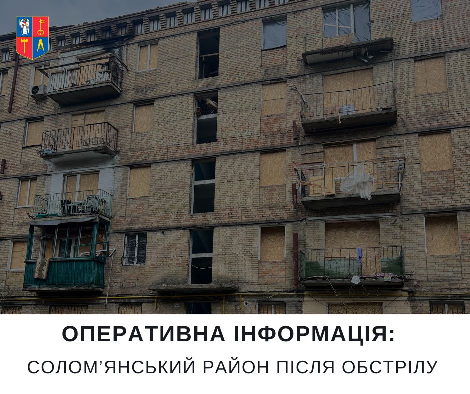 **Наслідки атаки на Солом’янський район Київ** значні. Загалом постраждало 106 об’єктів, понад 1150 квартир повідомили про розбиті вікна. На жаль, 24 квартири були повністю зруйновані, а ще 16 згоріли внаслідок пожеж, що виникли після удару. Удар також пошкодив майже 200 автомобілів та 11 об’єктів соціальної інфраструктури, вплинувши на повсякденне життя тисяч людей. Масштаби руйнувань вимагають комплексного підходу до **відновлення інфраструктури**.