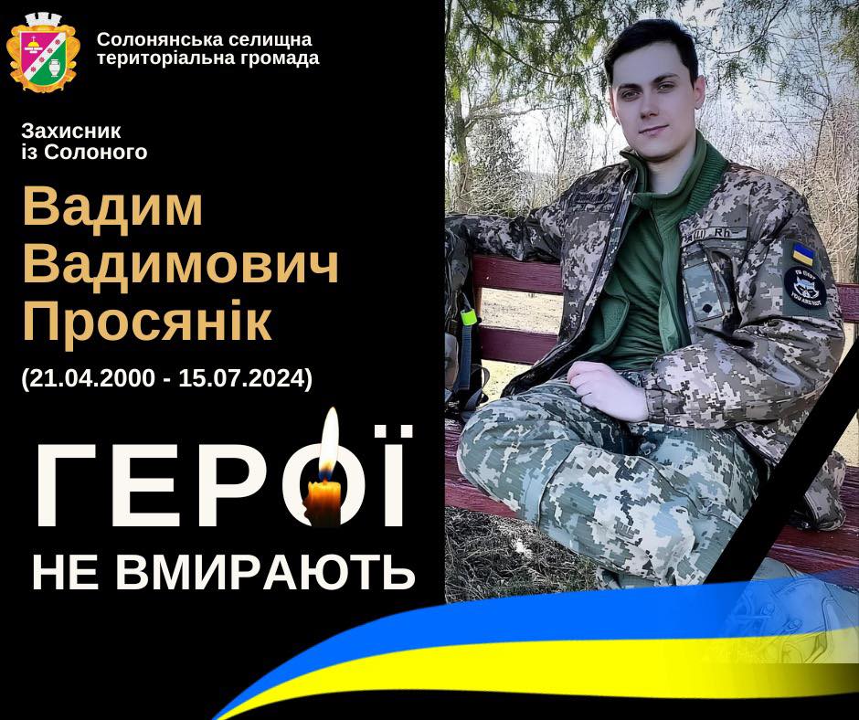 🕯️ Солонянщина з глибоким сумом оплакує свого сина. З невимовним болем у серці повідомляємо, що під час виконання свого військового обов’язку, в боротьбі за свободу та незалежність України, героїчно загинув Вадим Вадимович Просянік. Він був відданим військовій присязі та рідній землі, гідно несучи звання вірного сина України. Його мужність, відданість справі та самопожертва є прикладом незламного патріотизму, який назавжди залишиться в наших серцях. Вадим, віддавши своє життя за наше мирне майбутнє, став на вічну варту Небесного Воїнства. Ця втрата є невимовною для всієї громади. Солонянська селищна рада та всі її мешканці висловлюють найщиріші співчуття родині, близьким та побратимам загиблого героя. Нехай Всевишній дарує вам сили пережити це непоправне горе. Ми сумуємо разом із вами, розділяючи біль цієї страшної втрати. Церемонія прощання з нашим Героєм відбудеться 22 липня о 12:00 за адресою: селище Солоне, вул. Чорновола, 10 (колишня вул. Голуба). Ми закликаємо всіх, хто має можливість, прийти, щоб віддати належну шану нашому захиснику та гідно провести його в останню путь. Герої не вмирають – вони стають ангелами-охоронцями, які з вічності оберігають нашу Україну. Світла пам’ять і вічна слава нашому Герою! Ми пам’ятаємо його жертовність. Ми безмежно вдячні.