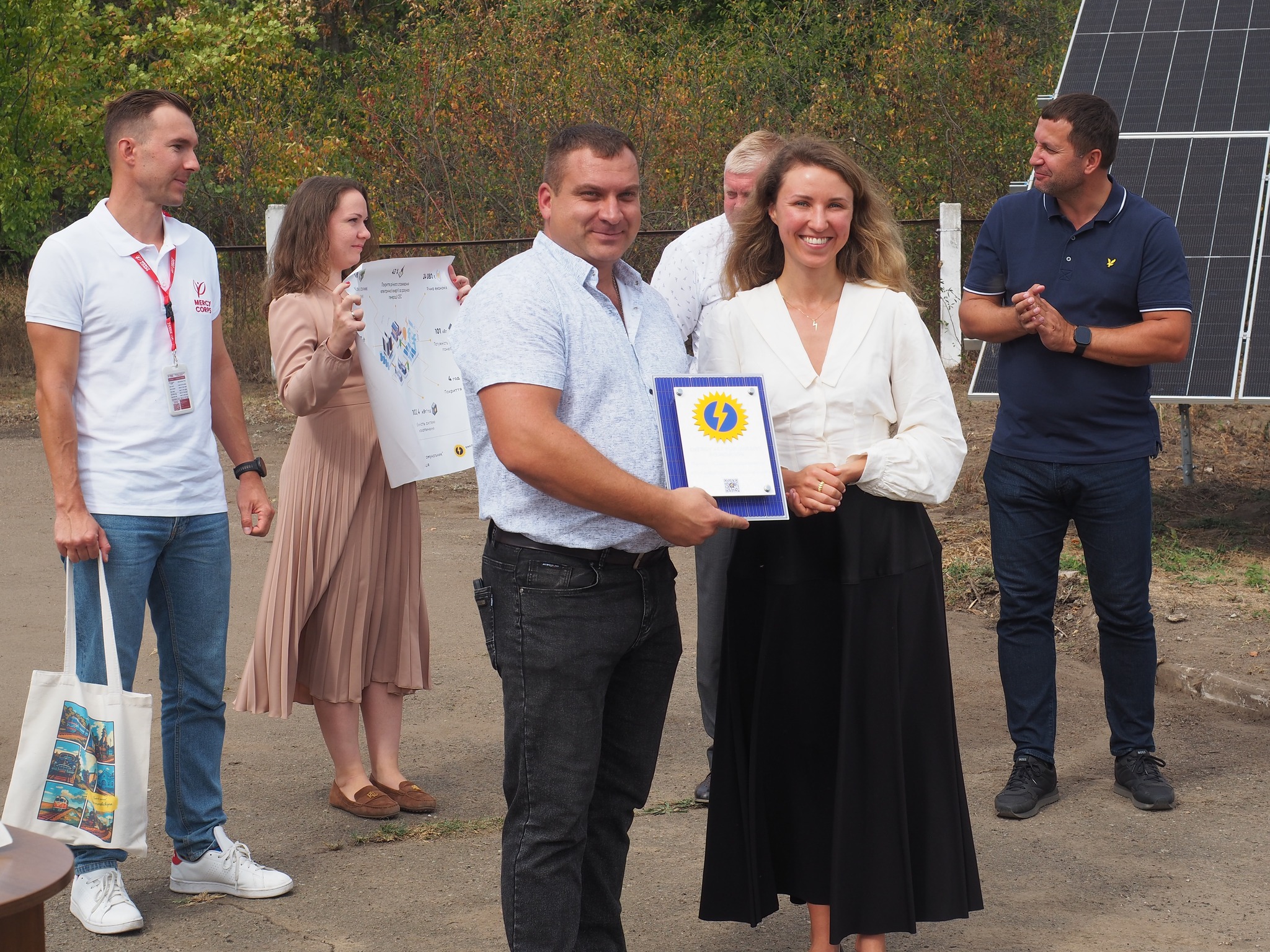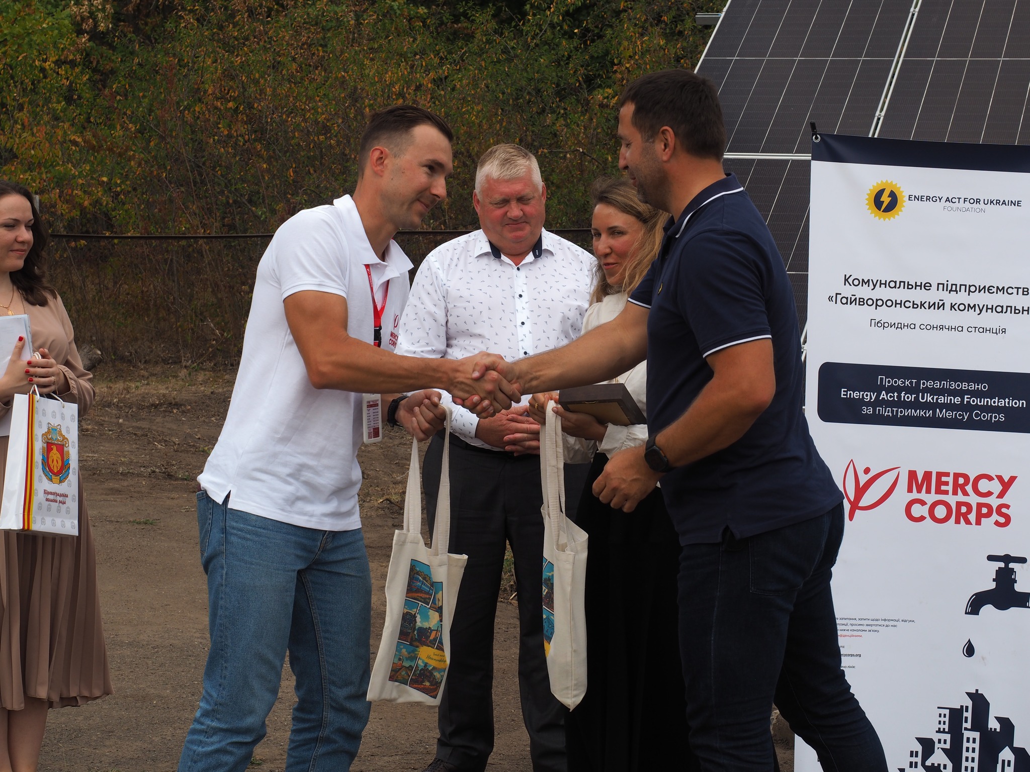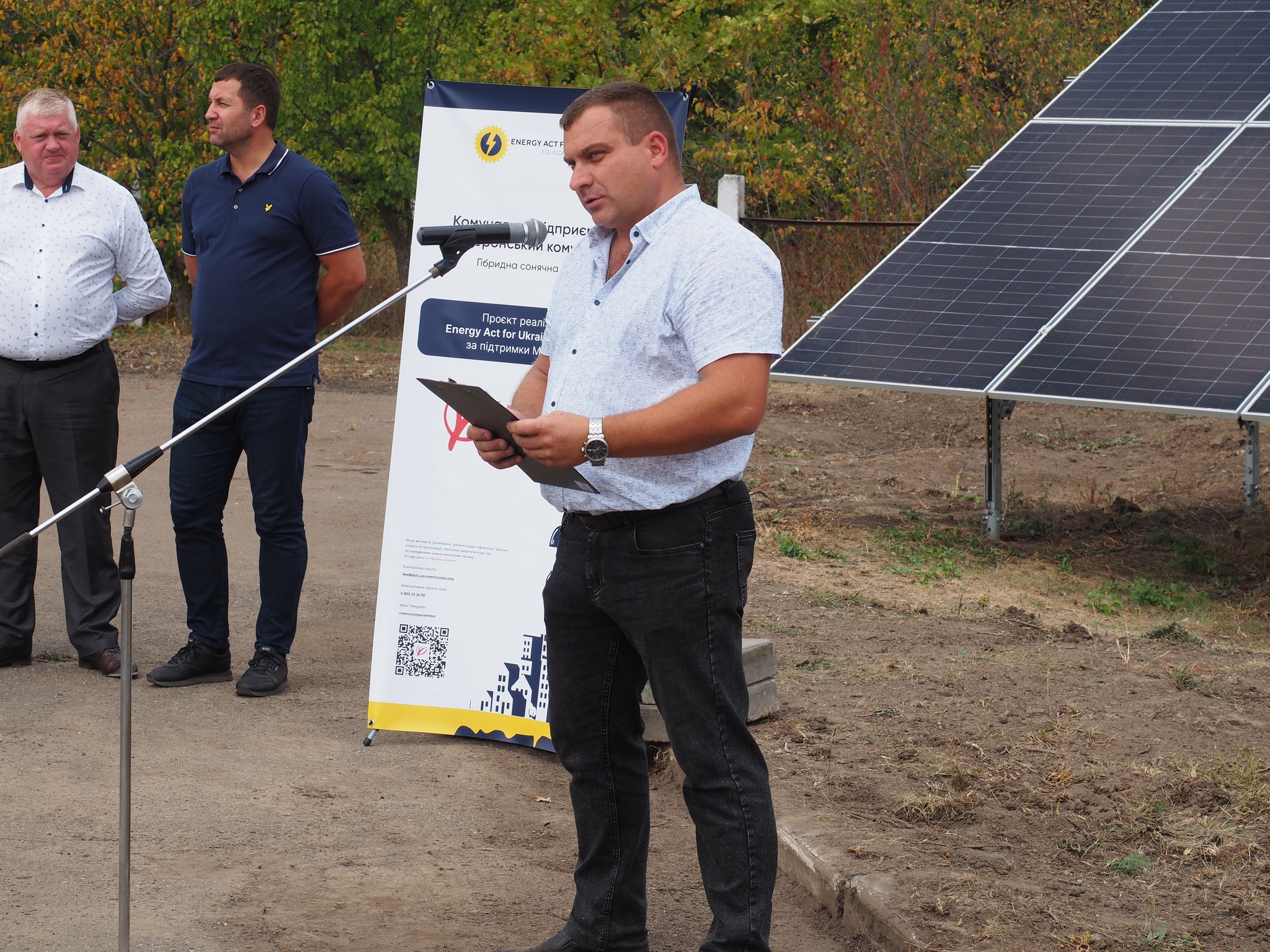 На заході були присутні ключові представники донорської організації Mercy Corps, які зробили вагомий внесок у реалізацію проєкту: Віталій Савич, Радник з енергетичних питань; Вікторія Козій, Менеджер грантових програм; та Олена Сітченко, Фахівчиня з комунікацій. Їхня експертиза та підтримка були неоціненними.