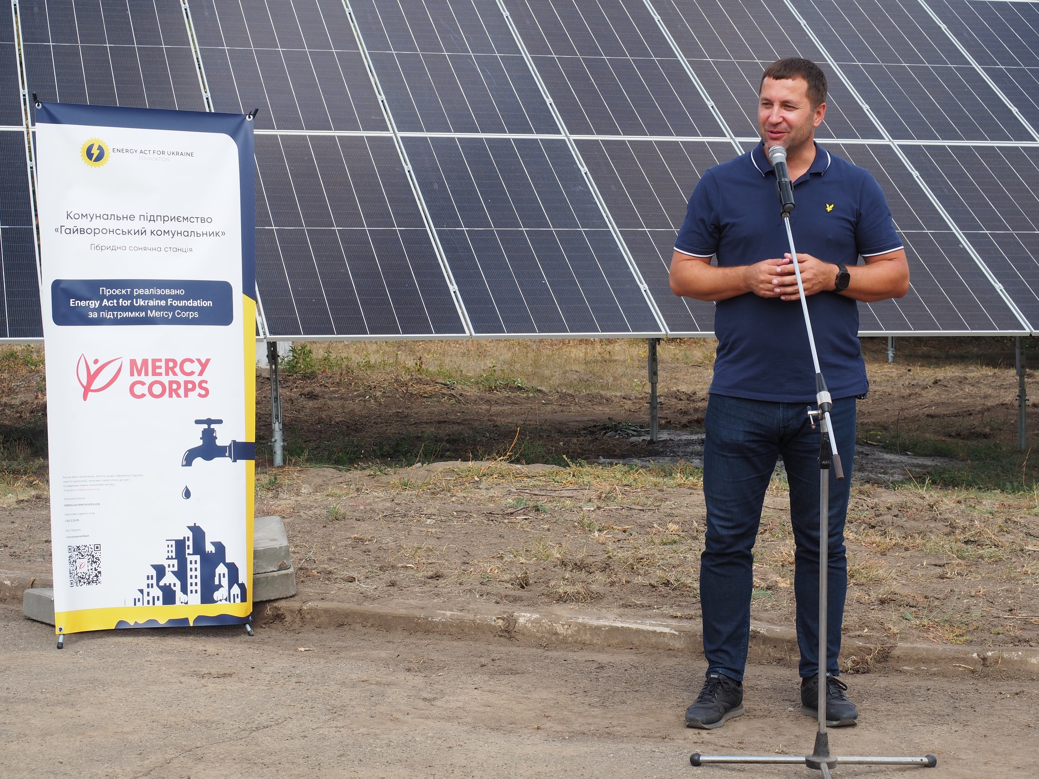На території Гайворонської громади успішно завершено будівництво та введено в експлуатацію сучасну наземну гібридну сонячну електростанцію. Цей новаторський об’єкт частково забезпечуватиме енергетичні потреби місцевого водоканалу, що є надзвичайно важливим кроком до енергетичної незалежності. Крім того, встановлена система накопичення енергії гарантує безперебійну роботу технологічного обладнання навіть у випадку тимчасового знеструмлення, підвищуючи надійність критичної інфраструктури.