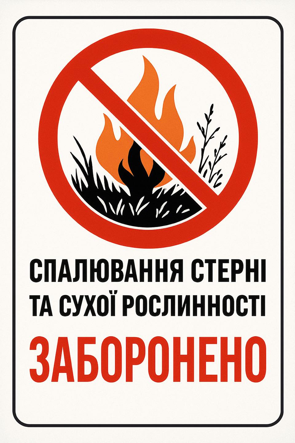 🚫 Спалювання стерні, сухої трави та будь-яких залишків рослинності — ЗАБОРОНЕНО! ❗ Порушення тягне адміністративну і навіть кримінальну відповідальність.