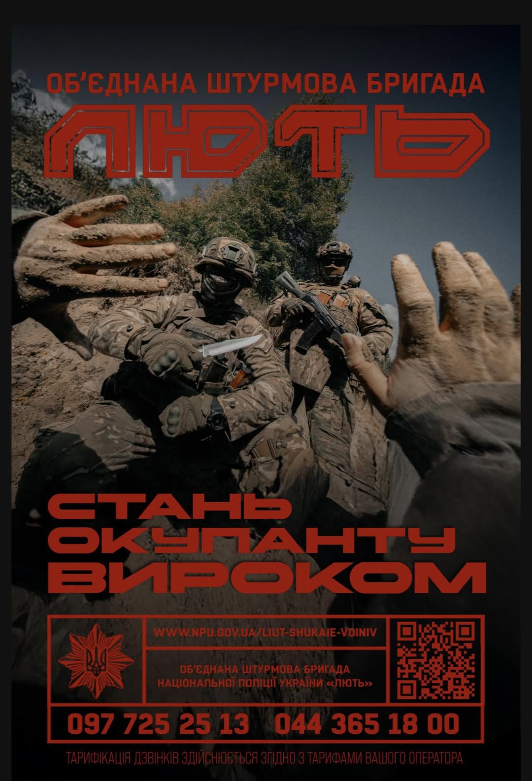 «Лють» – це не просто слово, це обіцянка відплати. Це бригада, де кожен воїн стає останнім, кого побачить ворог. Ми не прагнемо слави, ми прагнемо перемоги. Тут, де починається ваша «Лють», ворог робить свій останній подих. Приєднуйтесь до Об’єднаної штурмової бригади Національної поліції «Лють» і станьте тим, хто принесе справедливість.