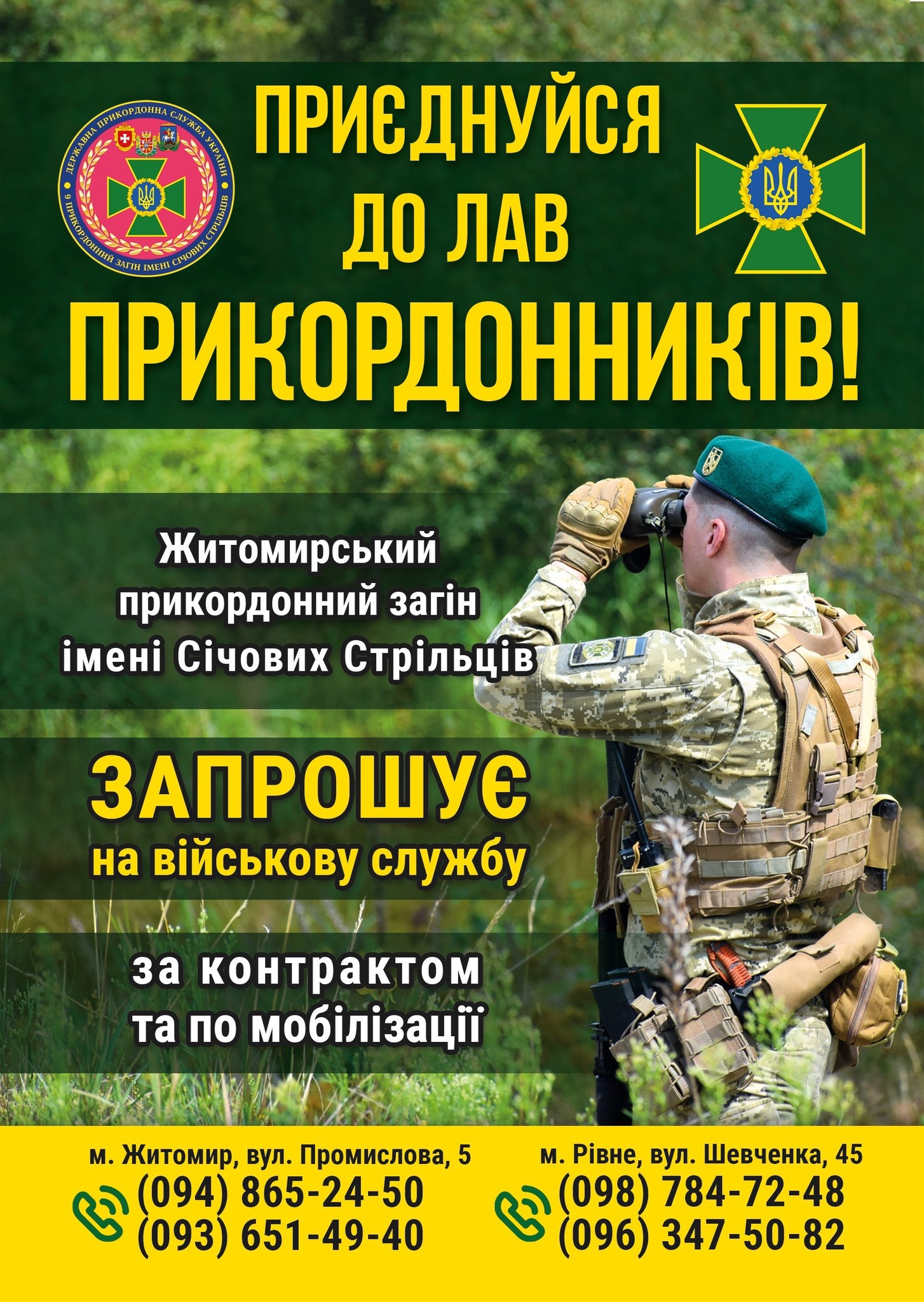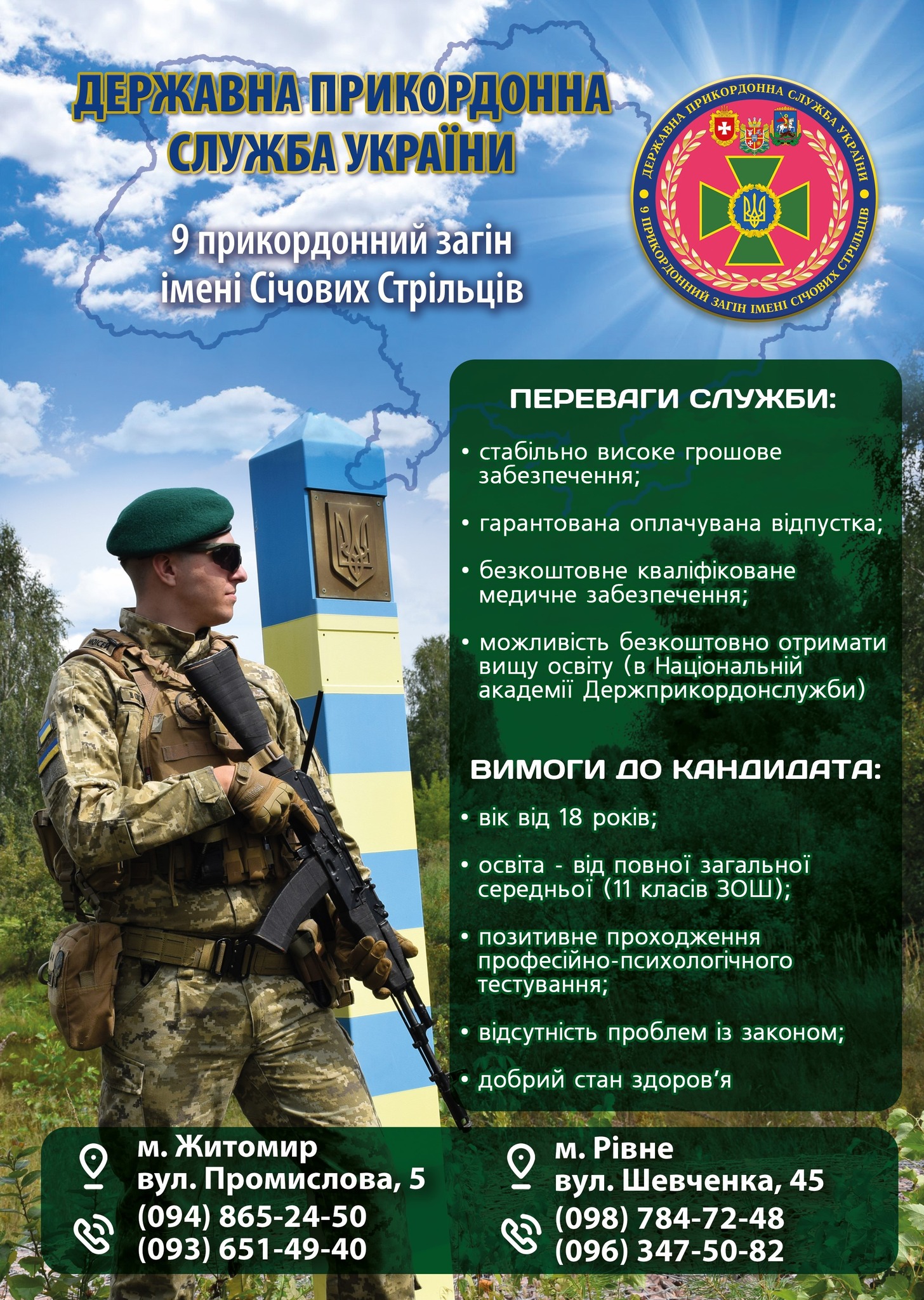 9 прикордонний загін імені Січових Стрільців Державної прикордонної служби України запрошує на військову службу з можливістю здобуття вищої освіти у лавах Державної прикордонної служби України!