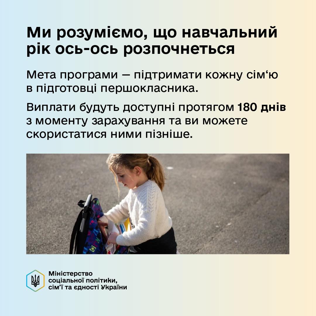 💳 Стартували виплати за державною програмою «Пакунок школяра» 🎒, яка покликана допомогти українським родинам підготувати їхніх дітей до нового навчального року. Вже перші 86 тисяч українських родин отримали цю значну фінансову підтримку. Ця допомога розрахована на кожного першокласника, який навчається в українській школі. Загалом держава виділила на реалізацію цієї програми 1,2 мільярда гривень, що свідчить про масштаби підтримки освітньої сфери.