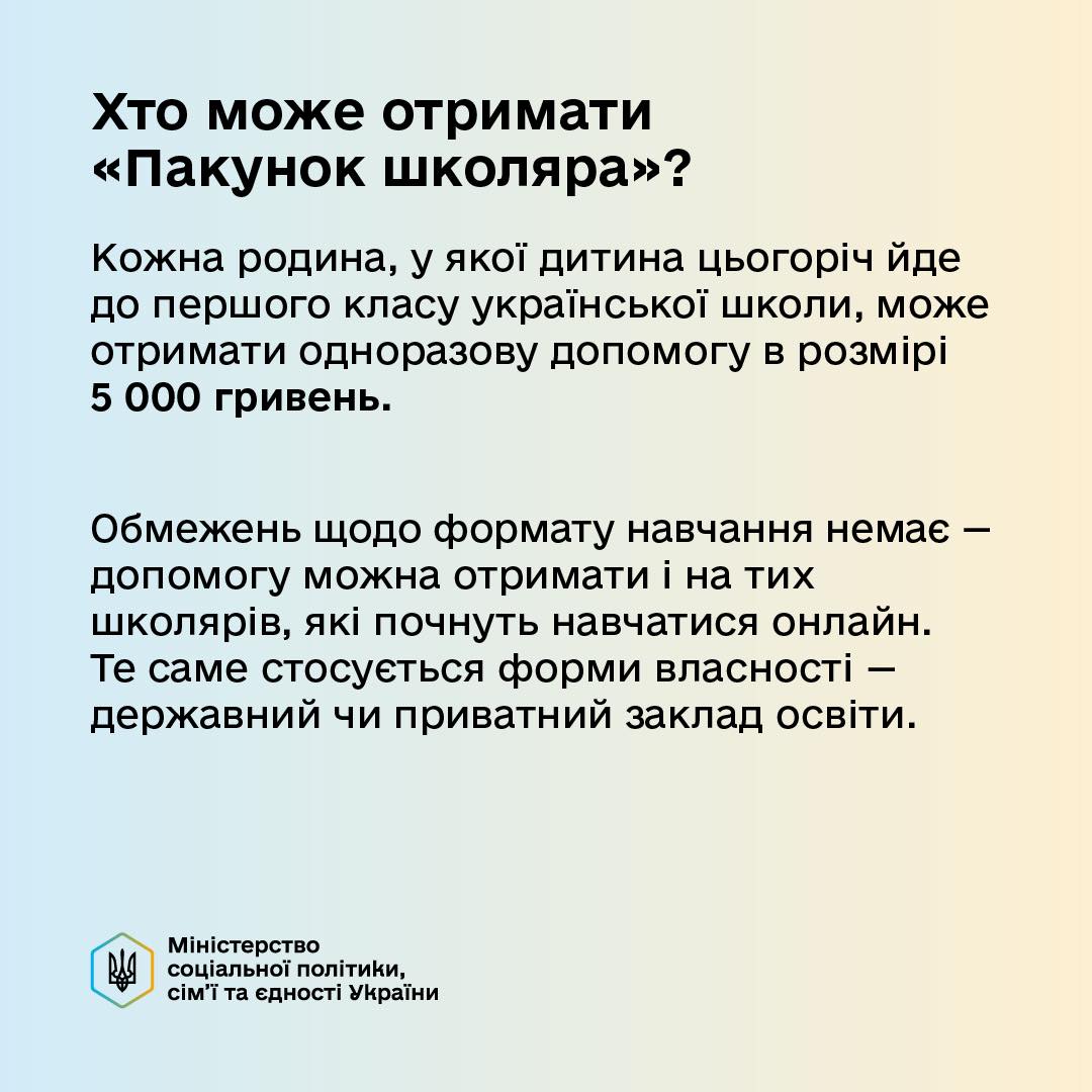 «Пакунок школяра»: старт виплат та як отримати допомогу