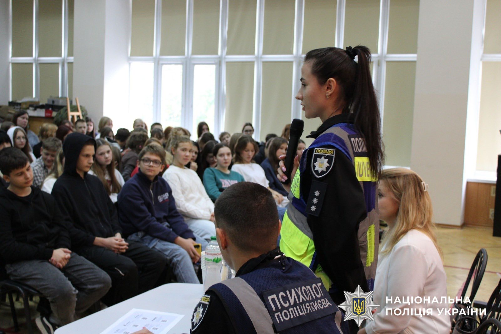 Крім того, школярів було проінформовано про їхні права та обов’язки, а також надано перелік контактних номерів телефонів екстрених служб та гарячих ліній, за якими можна отримати допомогу у будь-яких складних життєвих ситуаціях. Особливо було підкреслено, наскільки важливо вчасно звертатися по підтримку до дорослих – вчителів, батьків, психологів або поліції – аби спільно знаходити конструктивні рішення проблем.