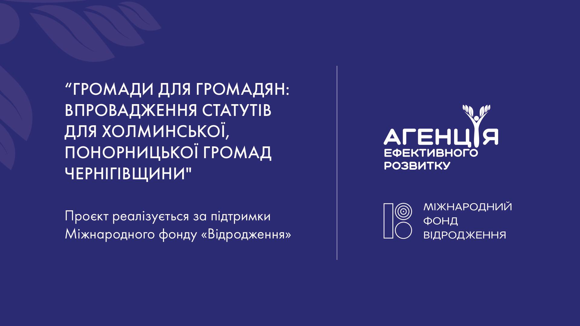 Громадська організація «Агенція ефективного розвитку» започатковує значущий проєкт, спрямований на посилену підтримку громад Чернігівщини, зокрема двох прикордонних населених пунктів: Понорницької та Холминської громад. Ключовим завданням цієї ініціативи є розробка та впровадження сучасних Статутів громад, що відповідають новим вимогам українського законодавства. Це є важливим кроком для забезпечення ефективного розвитку місцевого самоврядування та поглиблення місцевої демократії.