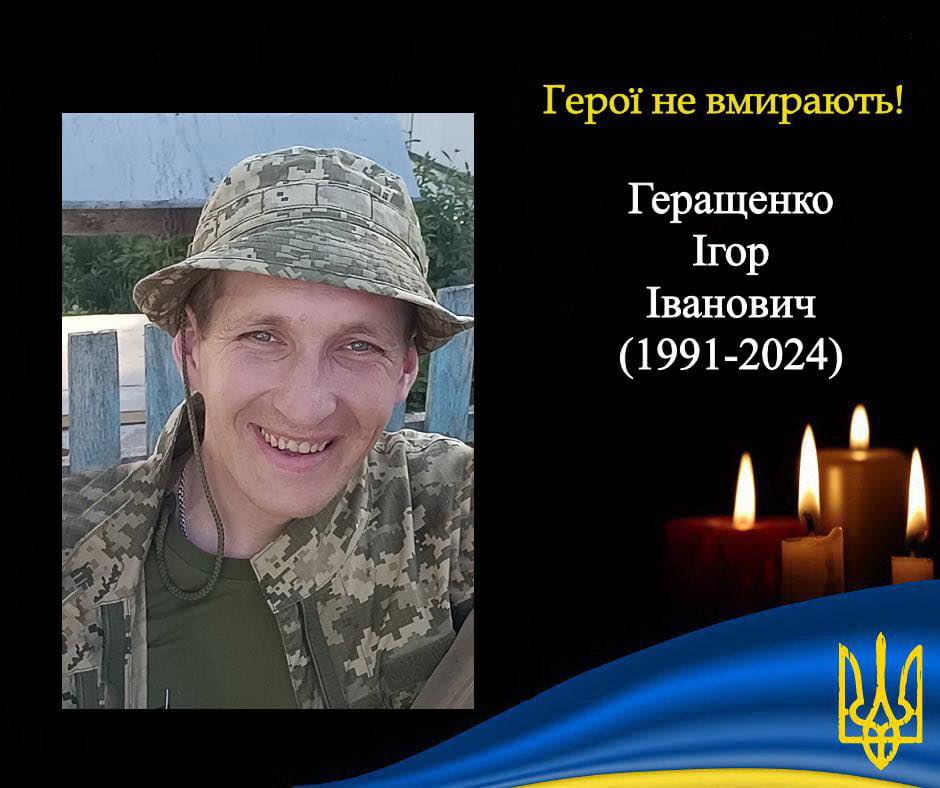 Рокитнянська громада висловлює щирі співчуття родині та близьким загиблого Героя. Ми завжди пам’ятатимемо наших земляків, які віддали своє життя за Україну. Їхній подвиг ніколи не буде забутий. Вічна пам’ять і слава Герою Геращенку Ігорю Івановичу! Дякуємо за захист! Навіки в наших серцях!