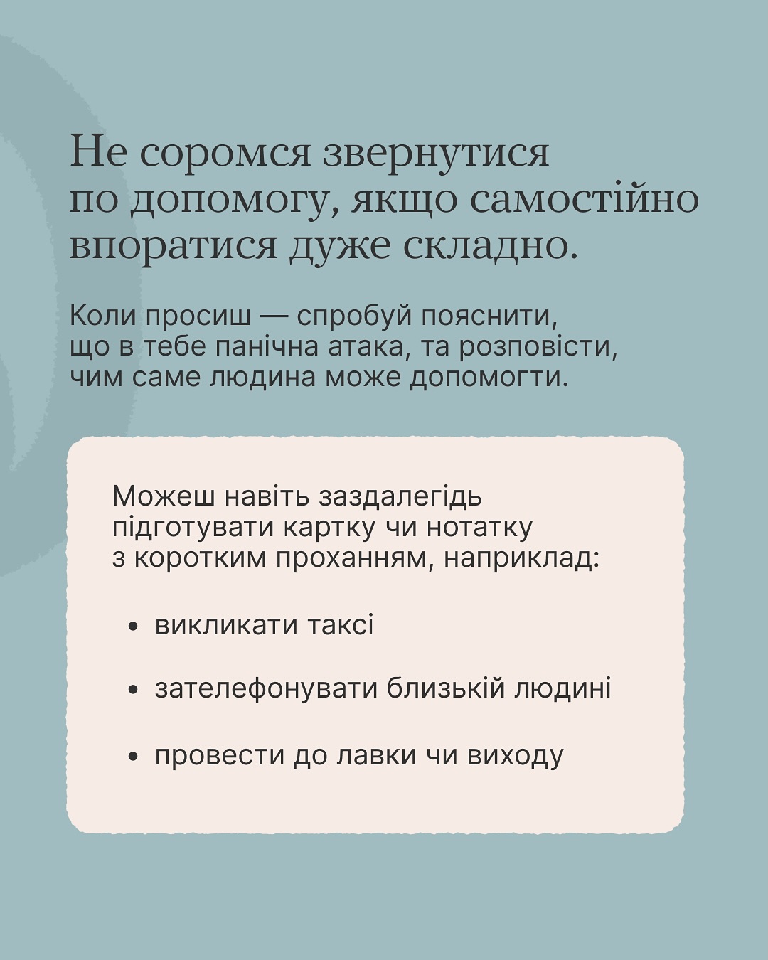 Також корисно мати при собі речі, які вас заспокоюють: маленький предмет, який приємно тримати в руках, або улюблений аромат. Навіть просте нагадування про близьких людей або приємні спогади може допомогти.