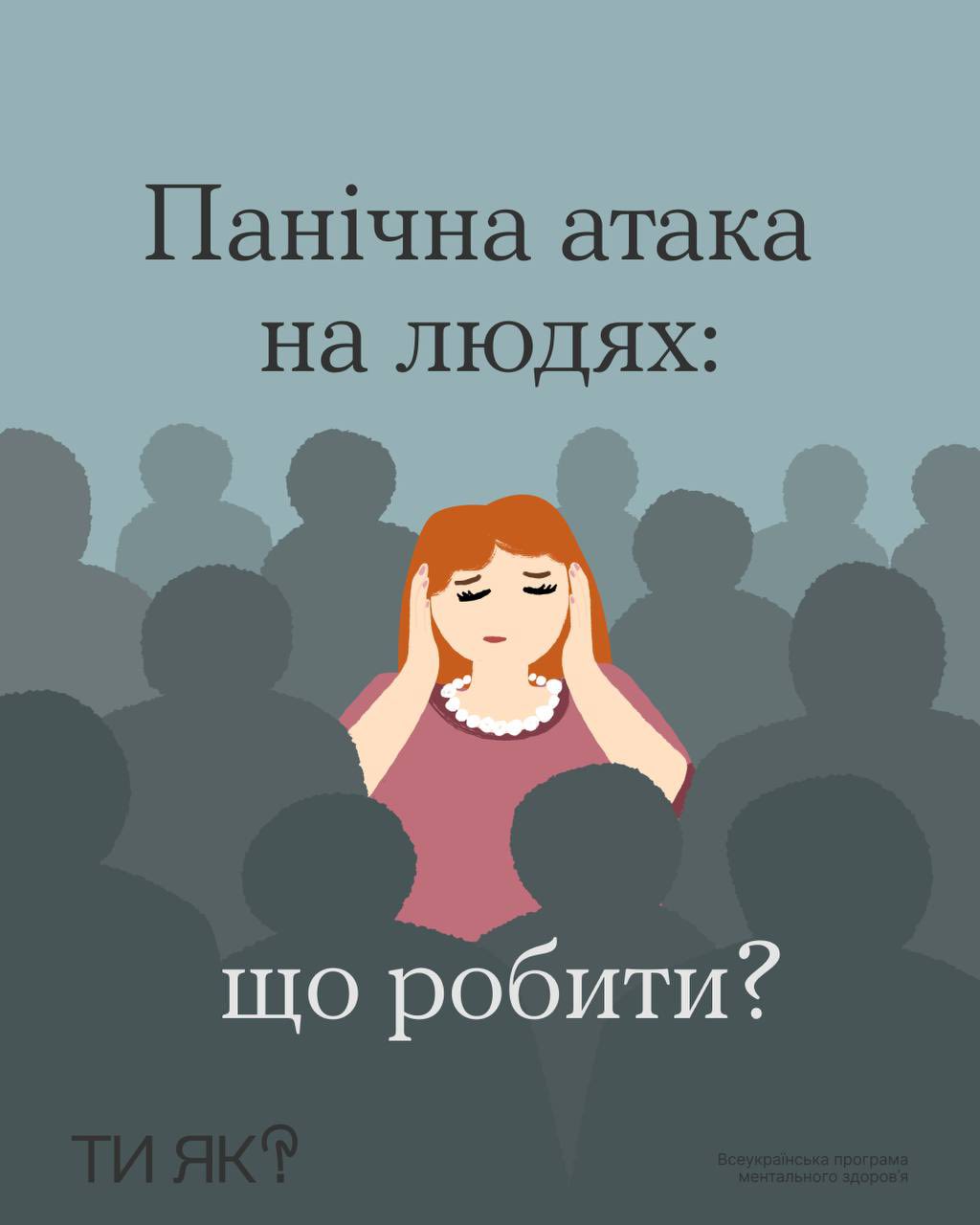 Панічна атака – це раптовий напад сильного страху, який може виникнути будь-де та будь-коли: у громадському транспорті, кінотеатрі чи навіть під час звичайних покупок. Хоча це відчуття може бути надзвичайно незручним та лякаючим, важливо пам’ятати, що воно мине. Навіть у присутності інших людей існують ефективні способи допомогти собі впоратися з цим станом. Експерти програми ментального здоров’я «Ти як?» зібрали дієві поради, представлені в цій добірці.