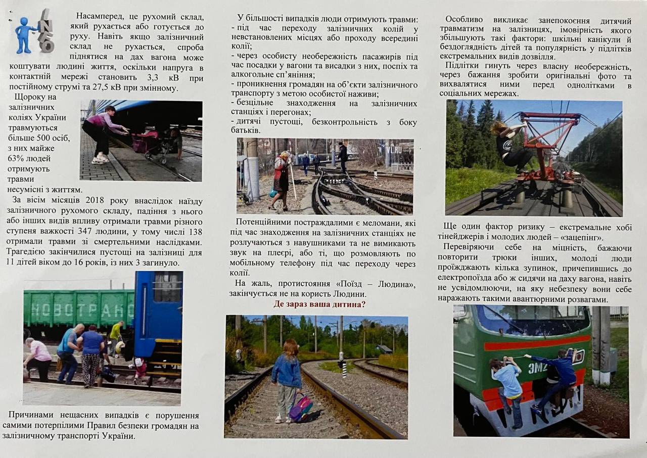 🚆 Пам’ятайте: залізниця – зона підвищеної небезпеки. Основними факторами ризику є наїзд рухомого складу та висока напруга в контактному проводі.