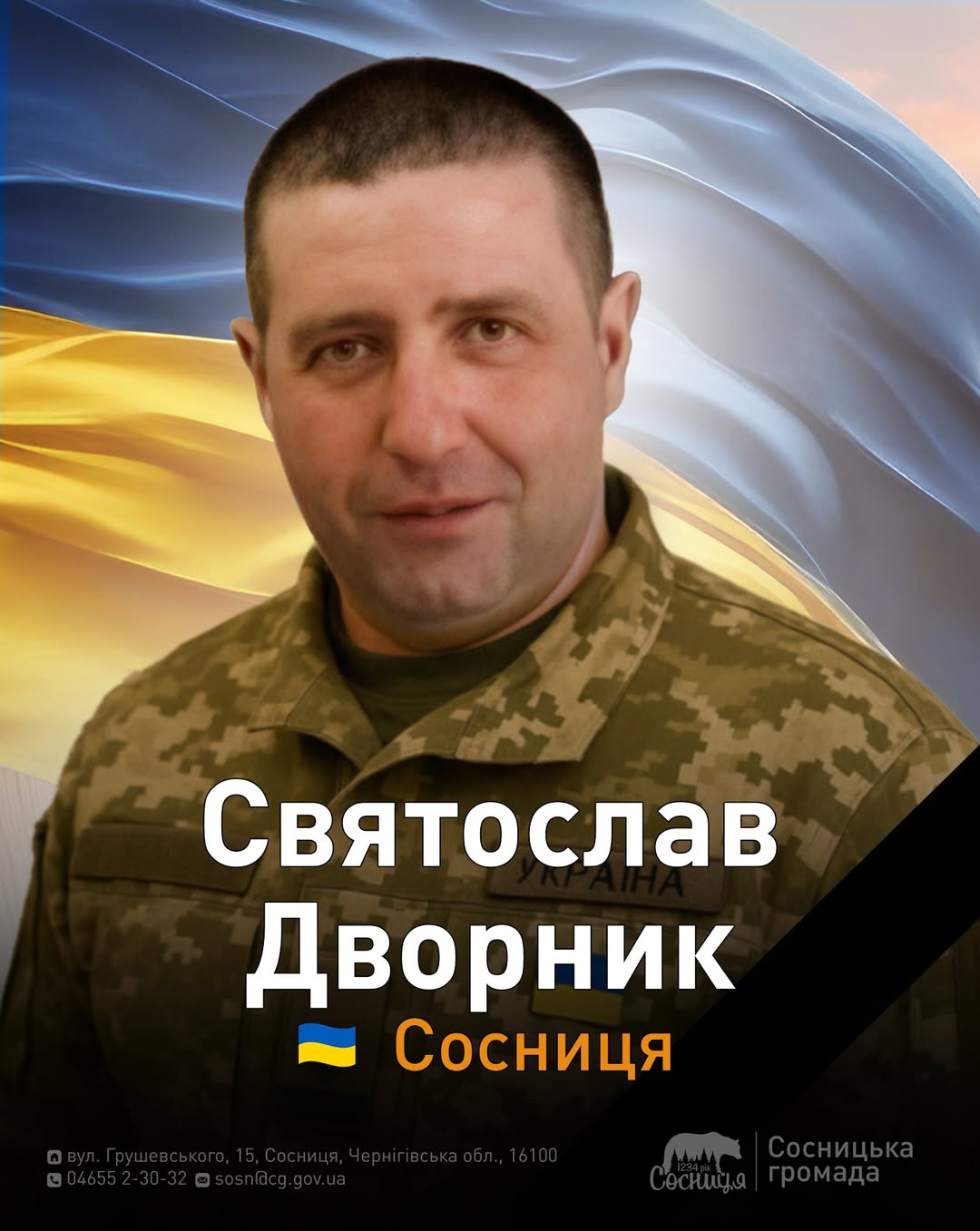 Сумна звістка На війні загинув 42-річний захисник із Сосниці ДВОРНИК Святосл…