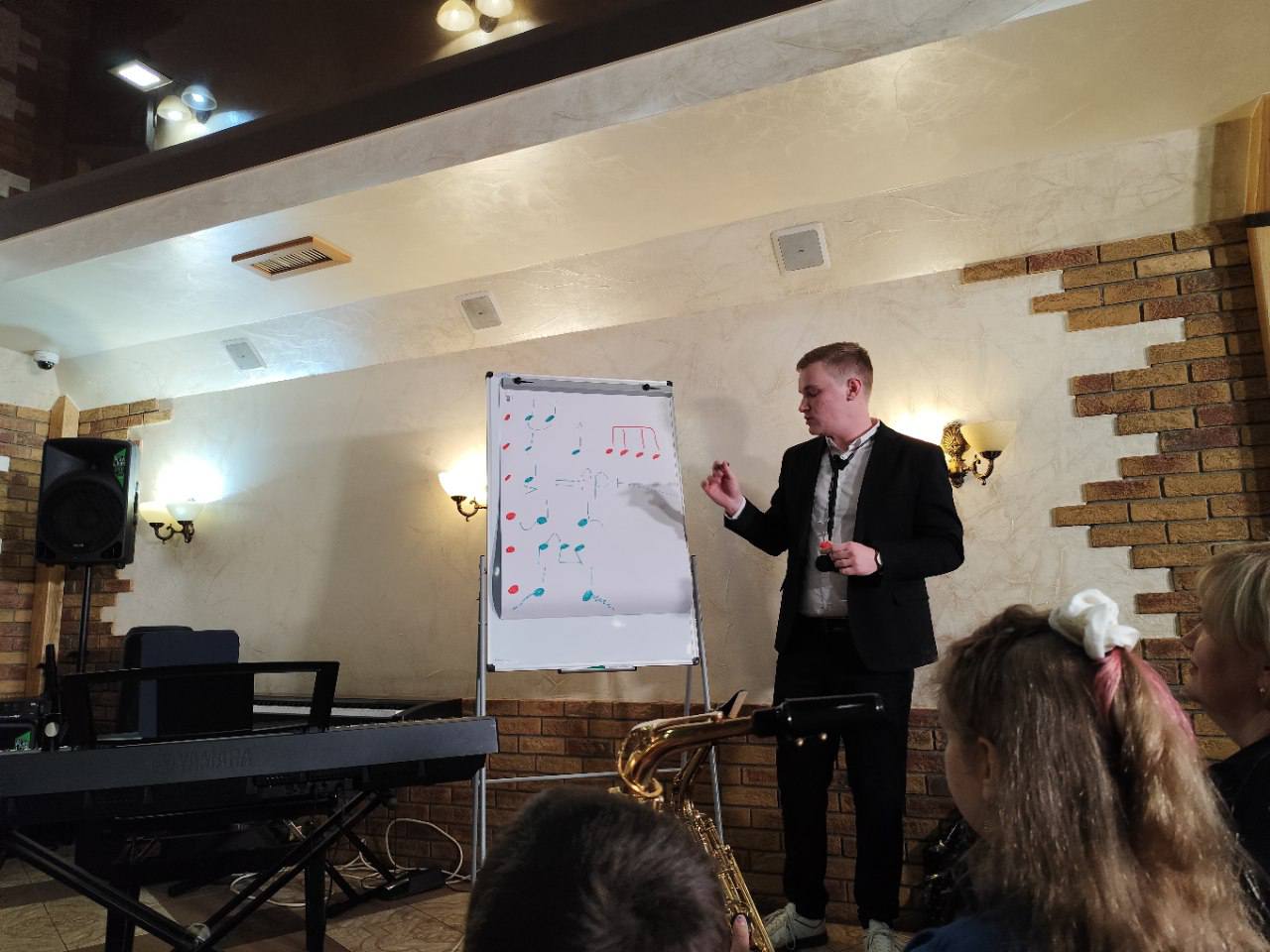 🎵Олексій Рябіко, викладач по класу саксофона ДМШ №2, розкрив специфіку джазової артикуляції при грі на духових інструментах. Олексій Рябіко є лауреатом всеукраїнських та міжнародних конкурсів, студентом Київської муніципальної академії музики ім. Глієра, артистом Київського академічного муніципального духового оркестру та біг-бенду під керівництвом Денніса Аду. Учні ДМШ Павло Черняков і Євгенія Рябіко продемонстрували презентовані викладачем вміння, засвідчивши високий рівень підготовки.