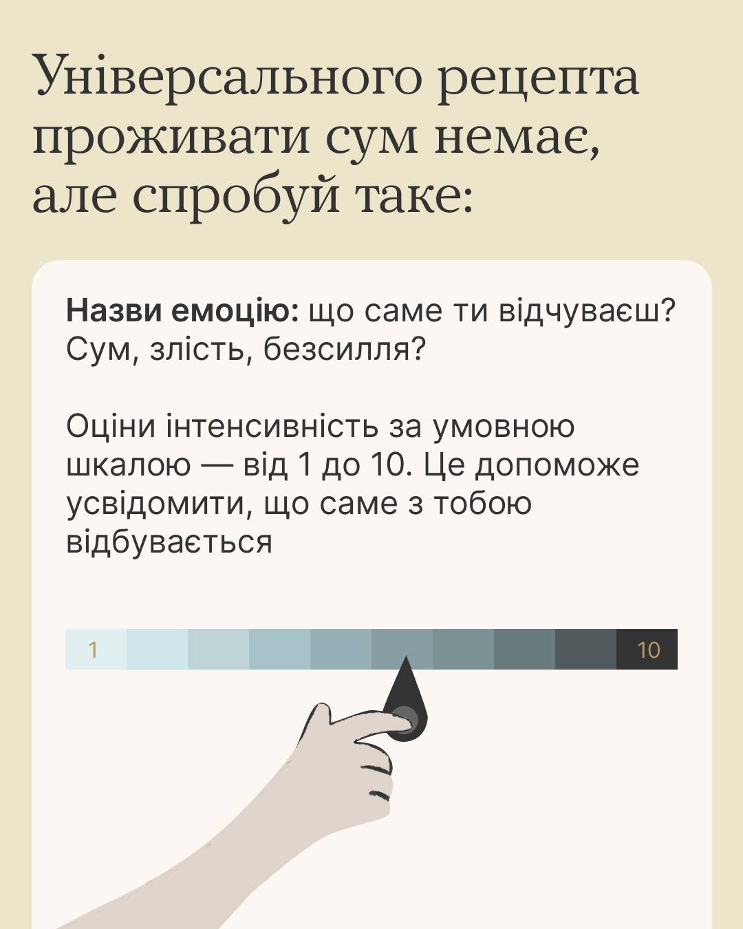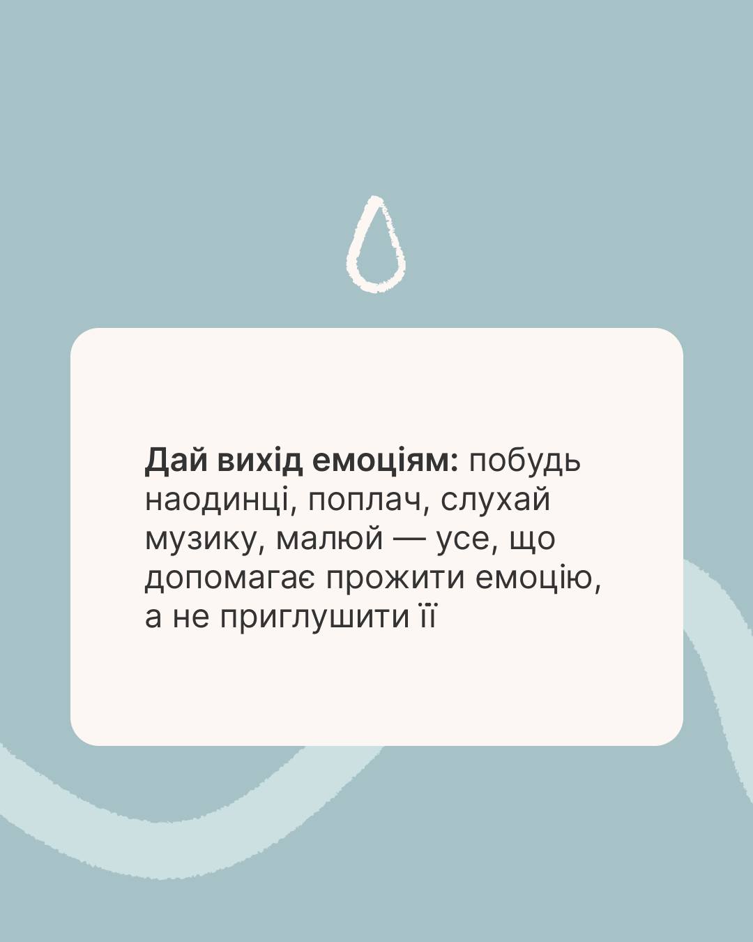 1. **Дайте собі дозвіл на смуток.** Не намагайтеся ігнорувати або придушувати свої почуття. Дозвольте собі відчути смуток, поплакати, якщо потрібно. Це допоможе вам звільнитися від емоційного напруження.