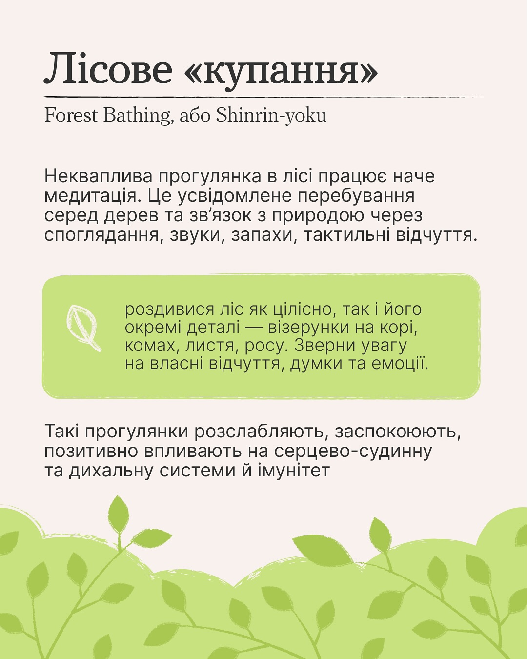 Та пиши в коментарях, який спосіб взаємодії з природою найкраще працює для твого ментального здоров’я ❓