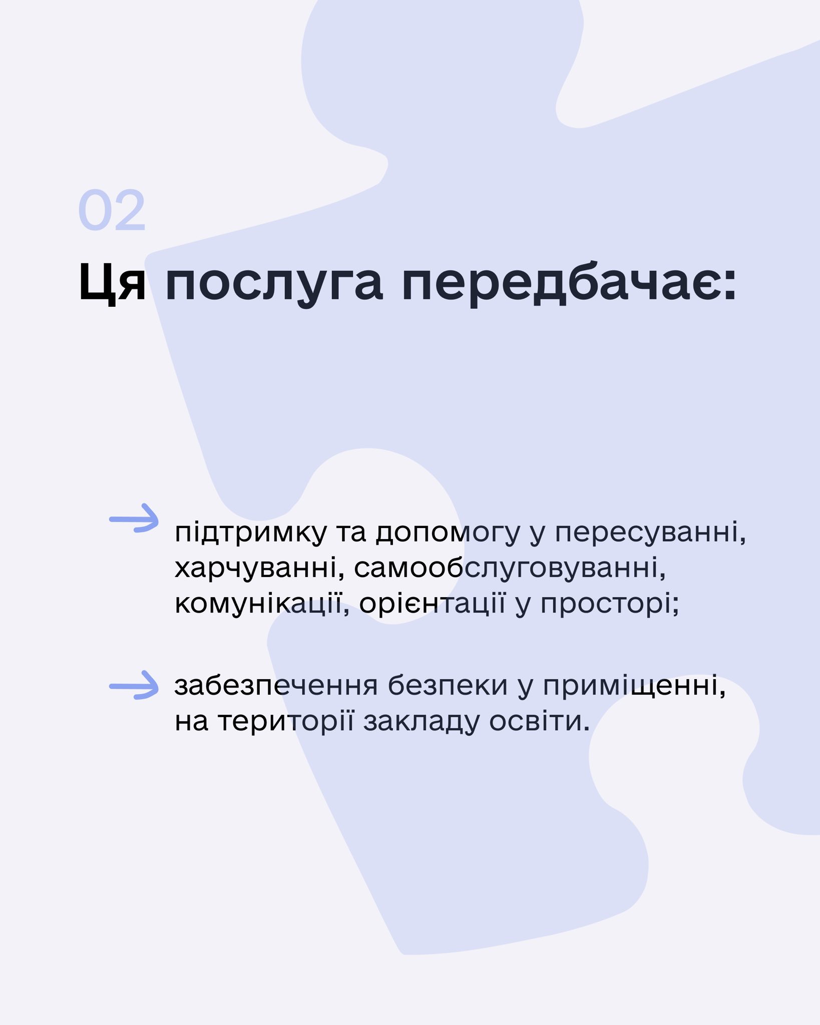 👩🏫 Послуга персонального асистента дитини протягом навчального року не лише сприяє активній залученості дитини до освітнього процесу, але й є невід’ємною частиною забезпечення загальної доступності освіти. Сама ж доступність освітнього середовища забезпечується освітнім закладом.