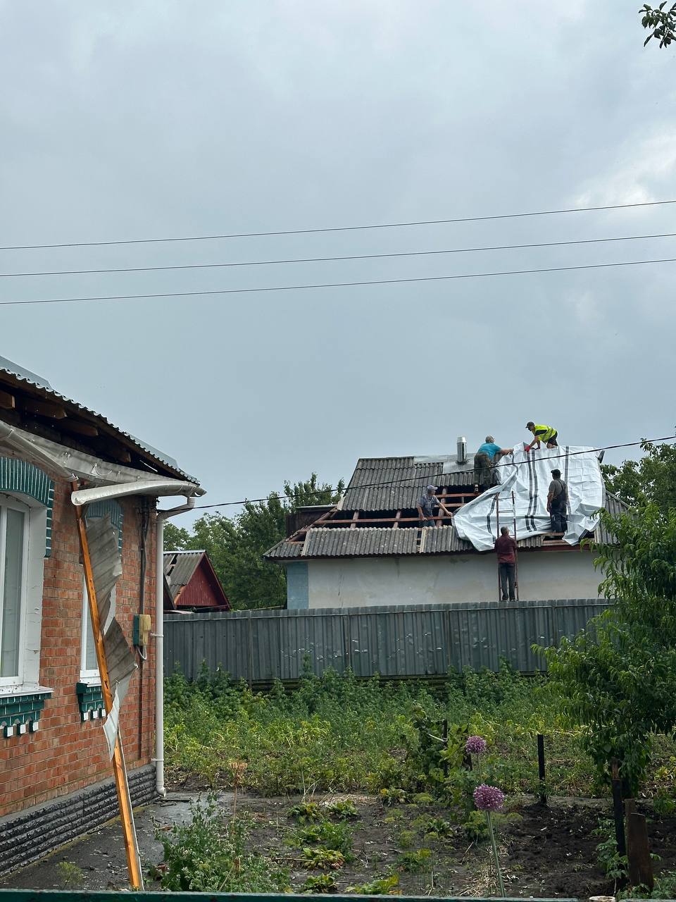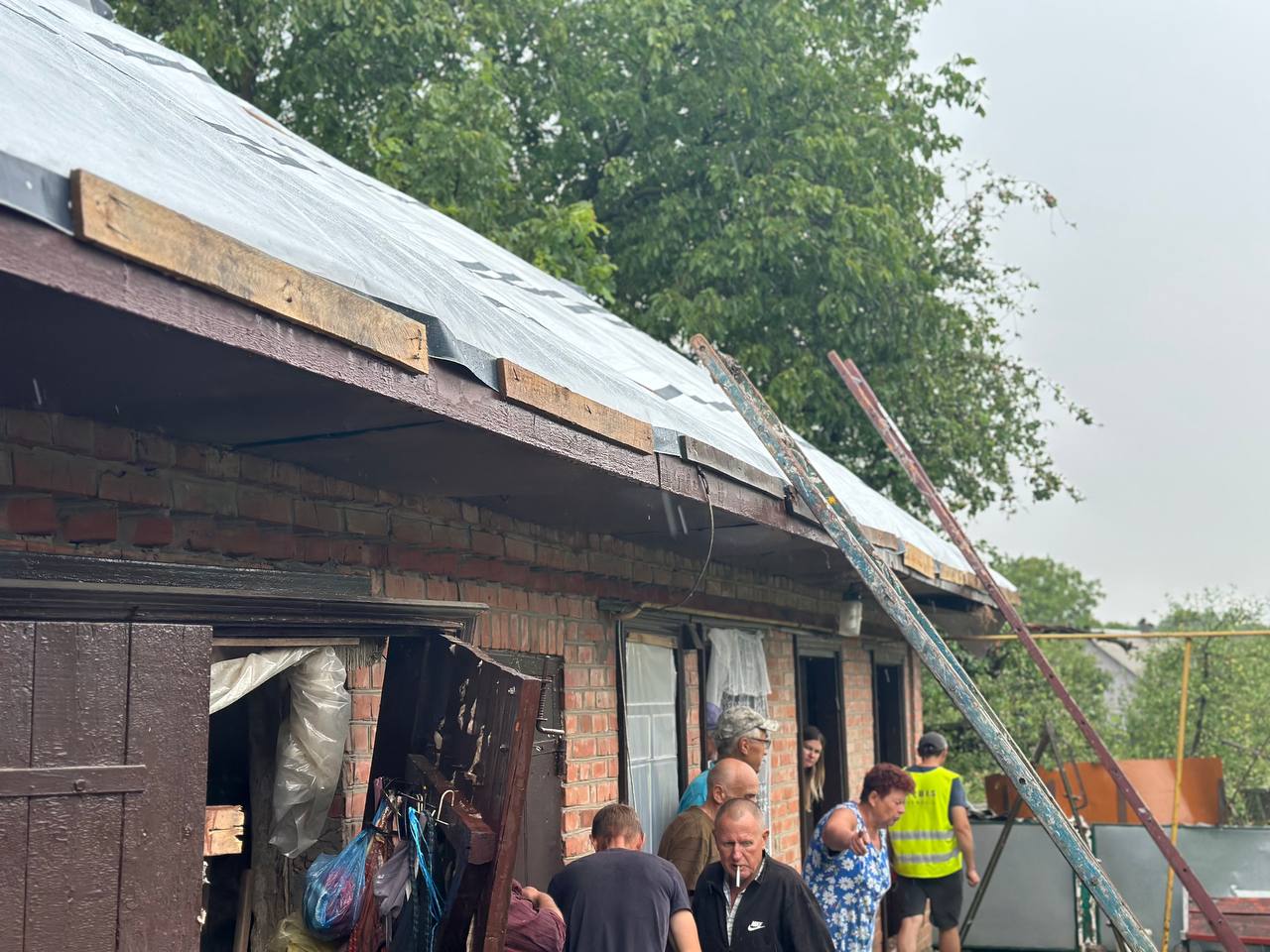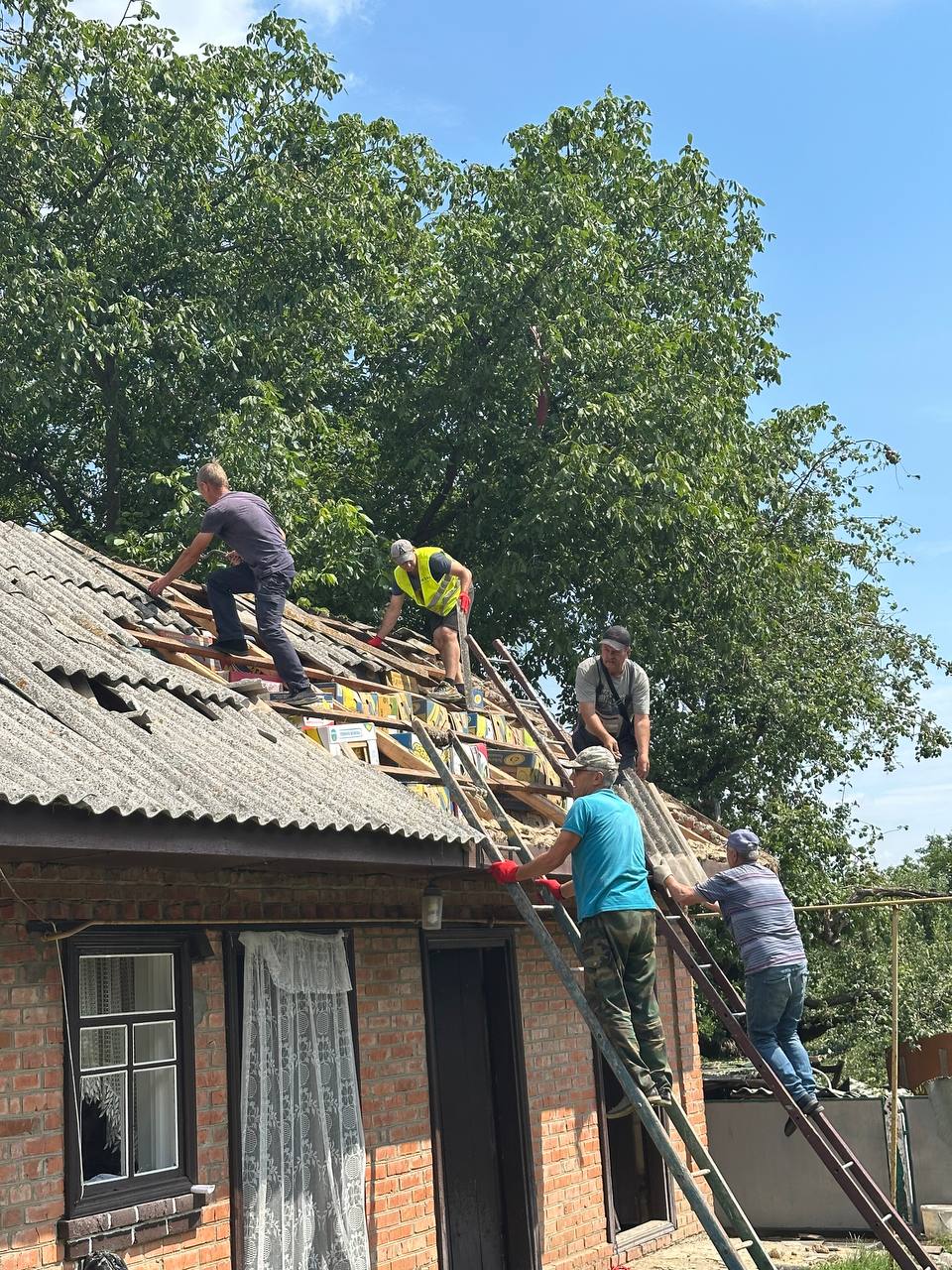 Паралельно будівельники обстежили хати, щоб сформувати кошторис для повноцінного ремонту. Це не такий швидкий процес, тому, щоб зараз дощ не затікав у будинки, їх тимчасово затягнули промисловою плівкою.